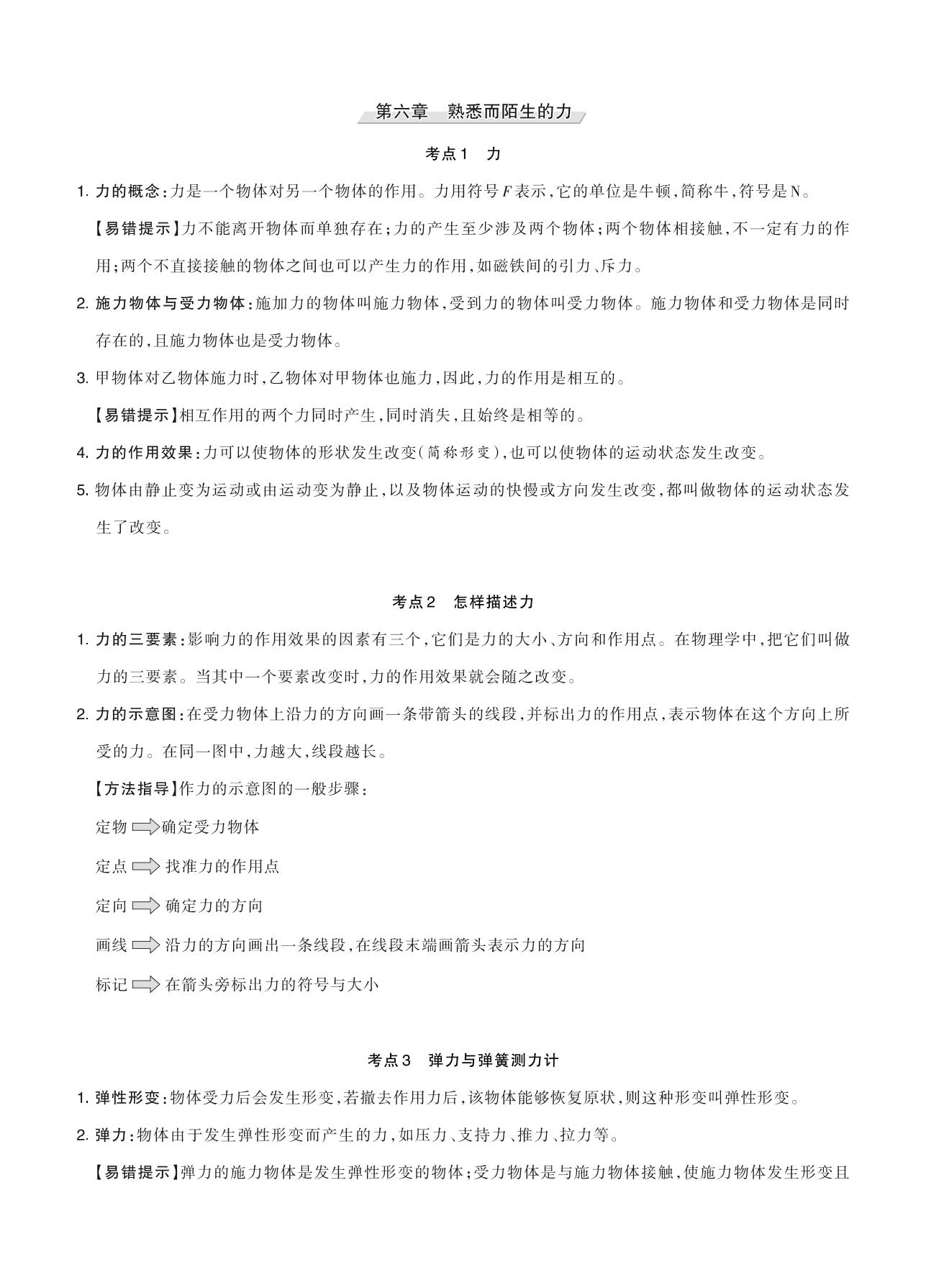 王朝霞期末知识梳理——第六章 熟悉而陌生的力八年级上册物理(沪科版)【6】
