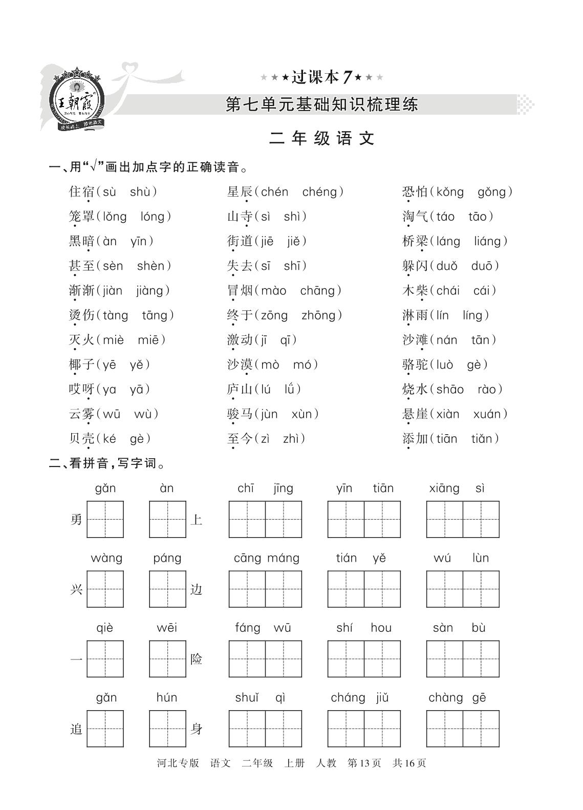 王朝霞期末过课本——第七单元基础知识梳理练二年级上册语文(人教版)_R211224084859745【7】