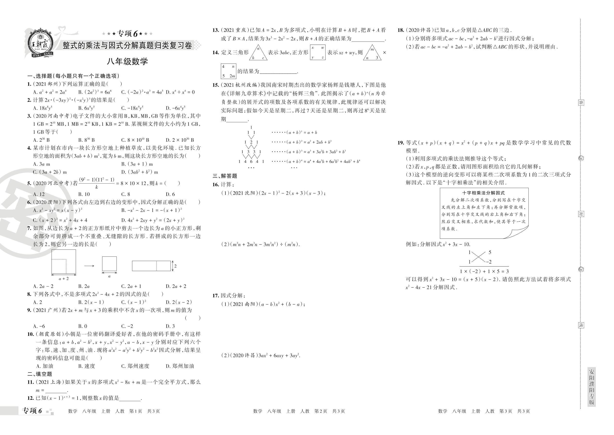 王朝霞期末专项卷——整式的乘法与因式分解真题归类复习卷八年级上册数学(人教版)_R211224085233829【6】