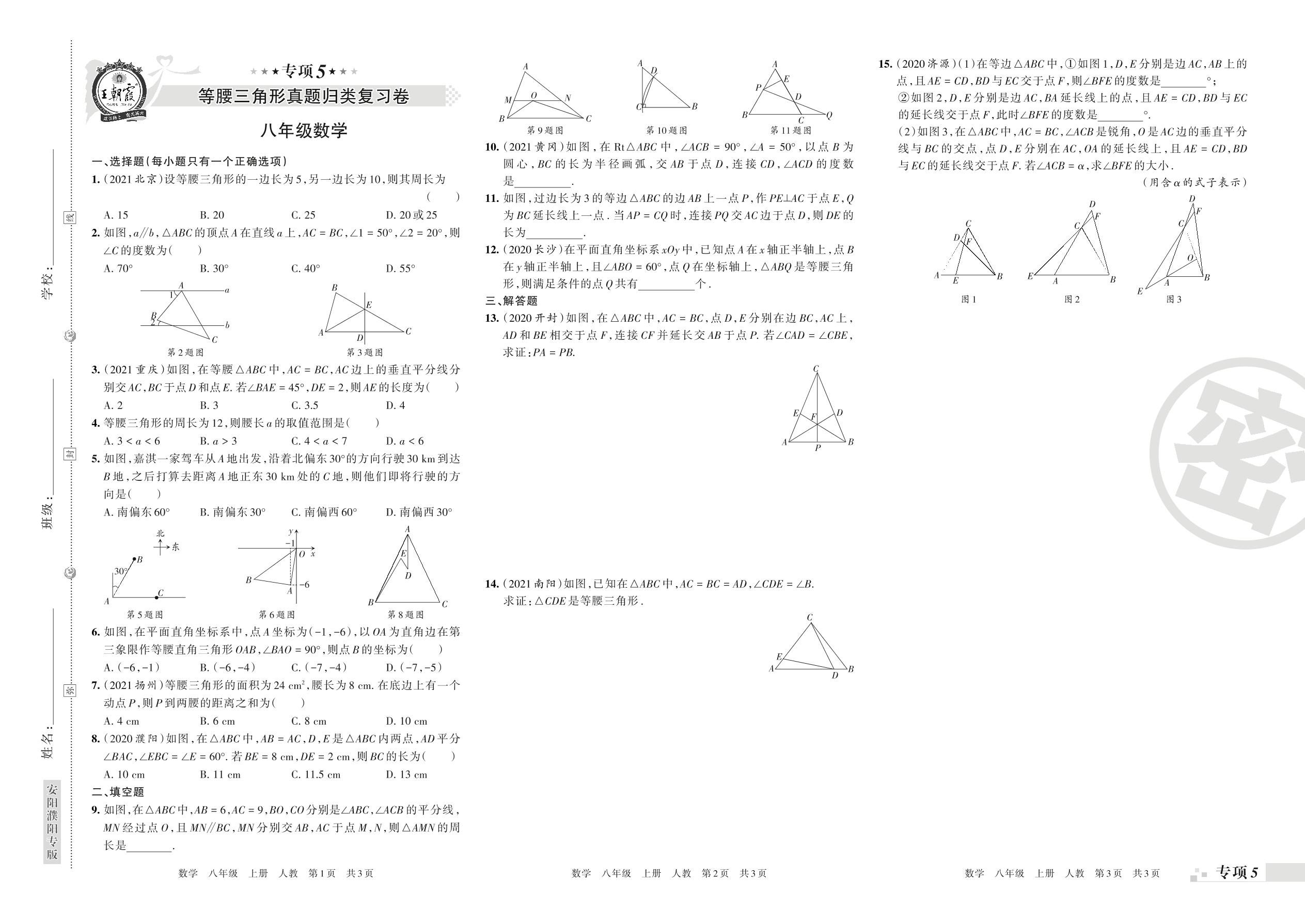 王朝霞期末专项卷——等腰三角形真题归类复习卷八年级上册数学(人教版)_R211224085233414【5】