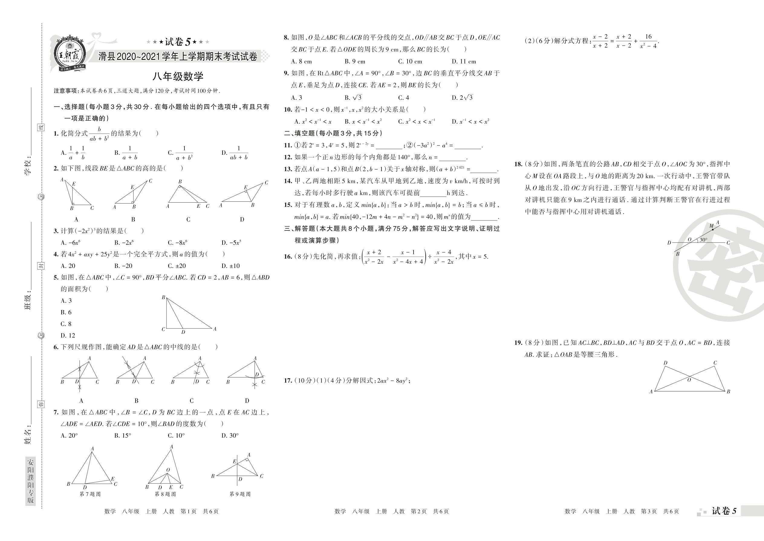 滑县2020~2021学年上学期期末考试试卷八年级数学(人教版)【5】