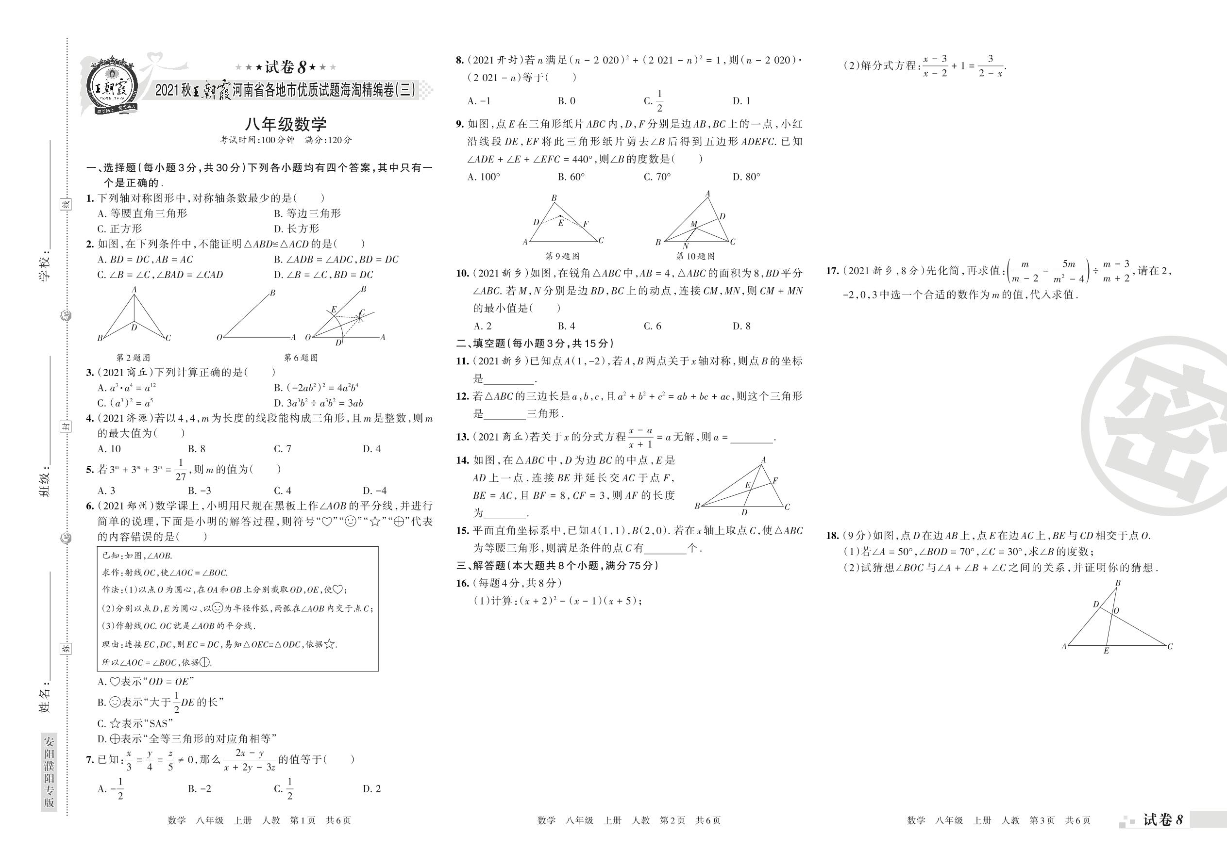 河南省各地市优质试题海淘精编卷(三)八年级上册数学(人教版)【8】