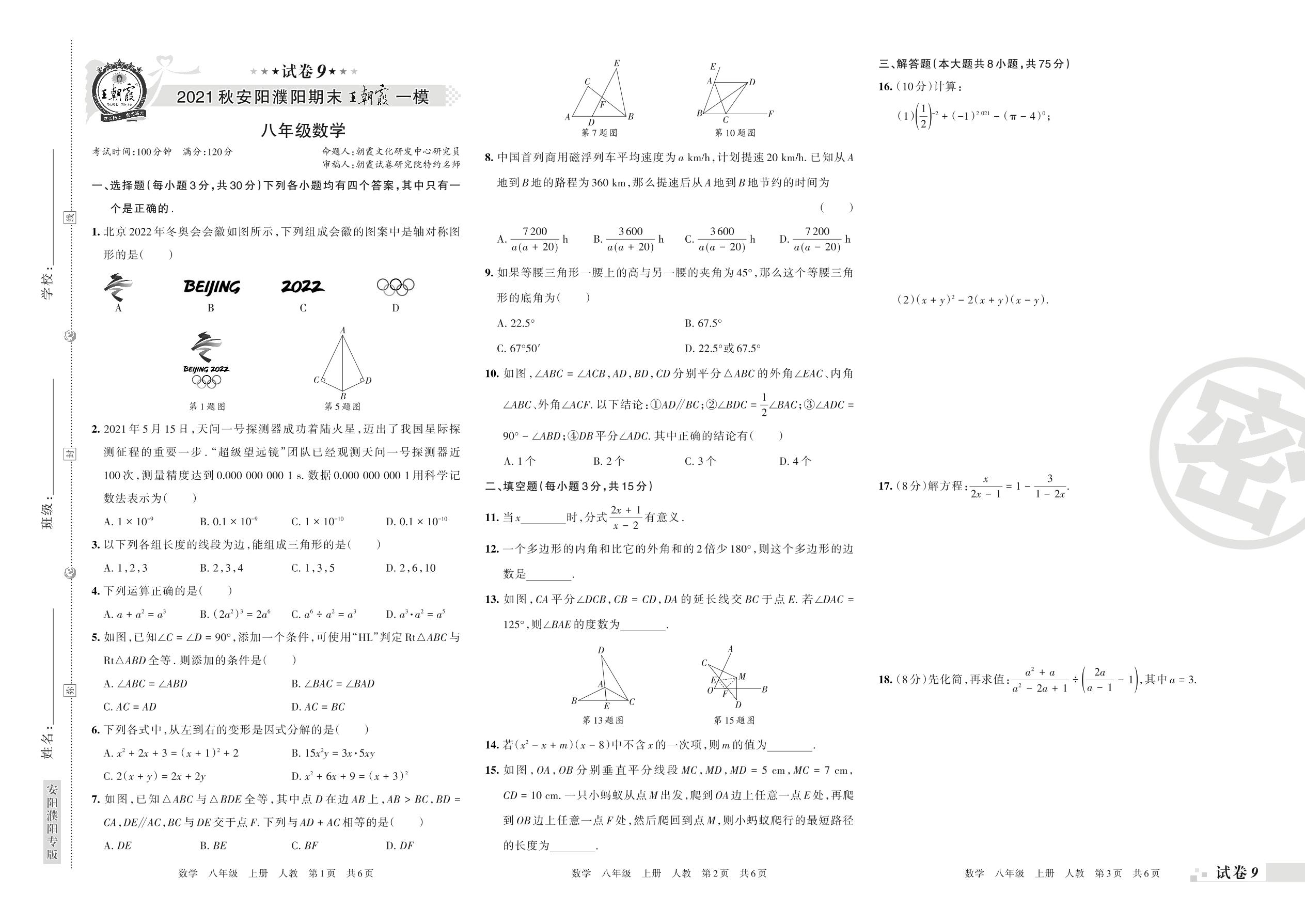 王朝霞期末模拟卷八年级上册数学(人教版)_R211224085234562【9】