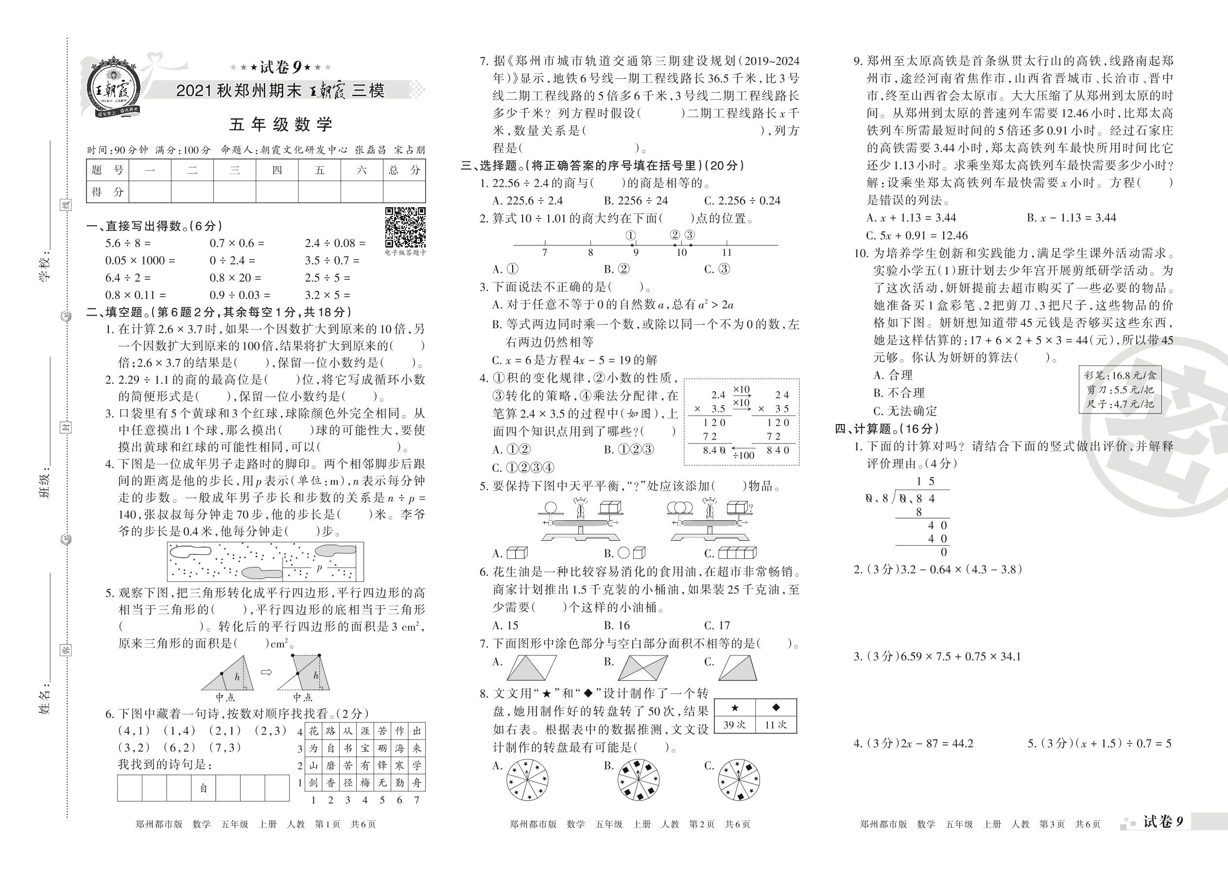 王朝霞期末模拟卷五年级上册数学(人教版)_R211224085550655【9】