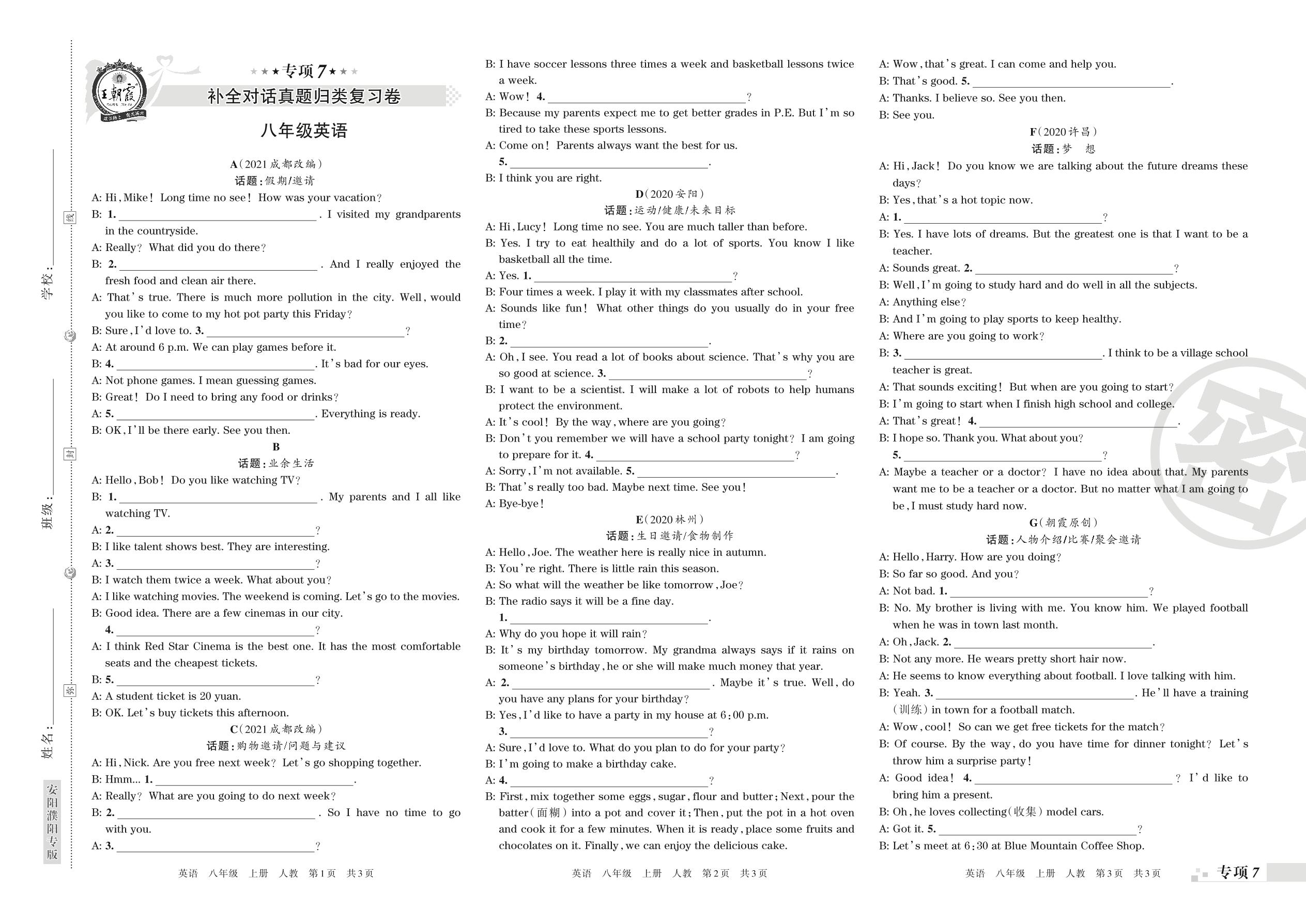 王朝霞期末专项卷——补全对话真题归类复习卷八年级上册英语(人教版)_R211224085952764【7】