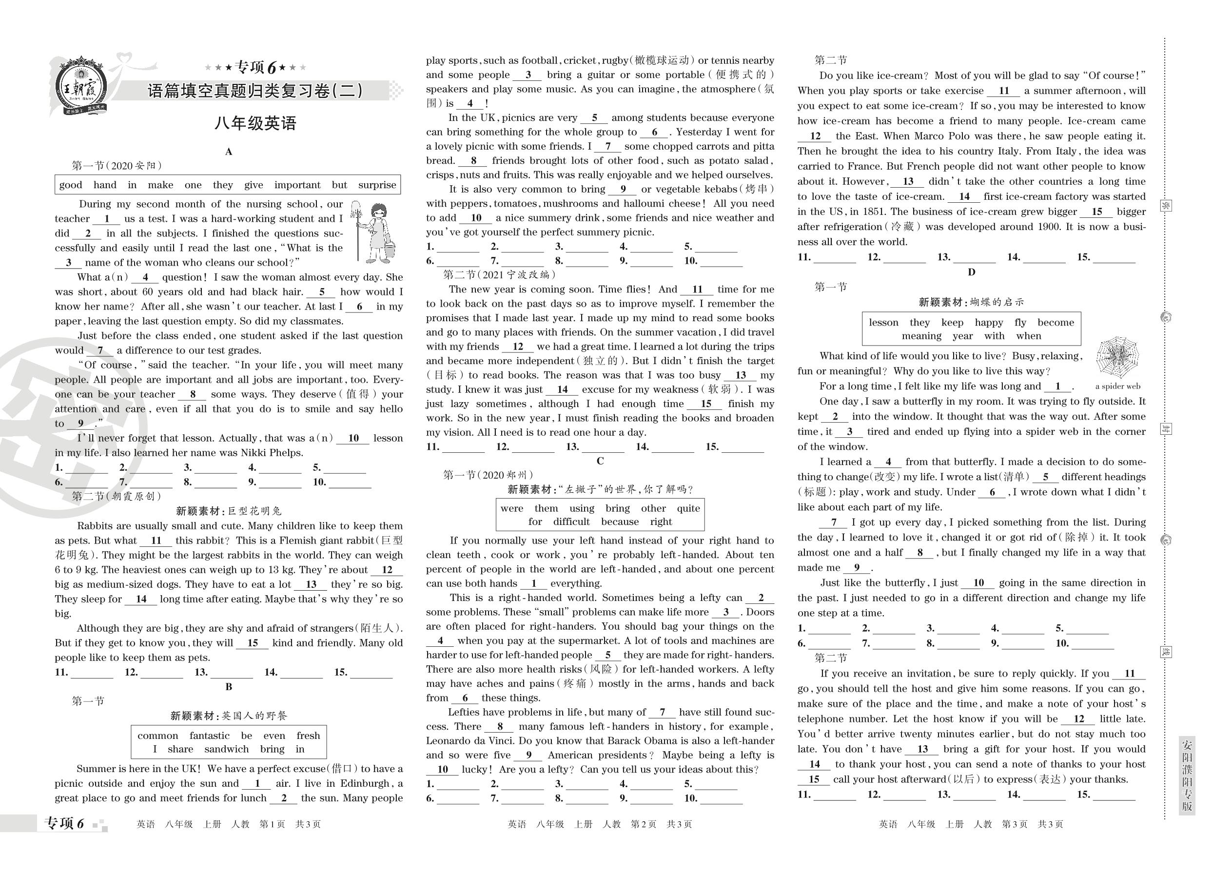 王朝霞期末专项卷——语篇填空真题归类复习卷(二)八年级上册英语(人教版)_R211224085952733【6】