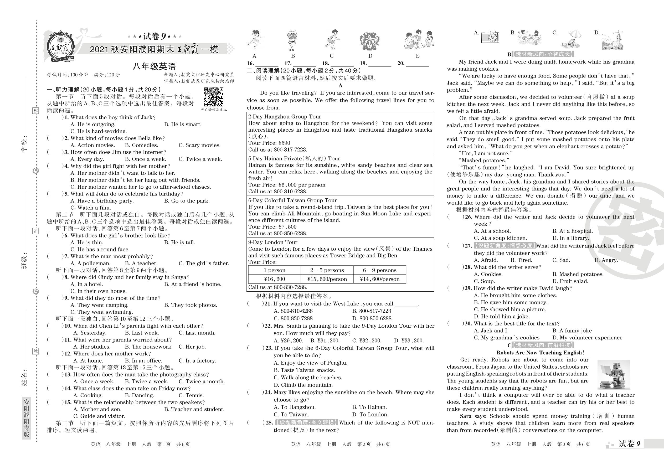 王朝霞期末模拟卷八年级上册英语(人教版)_R211224085953392【9】