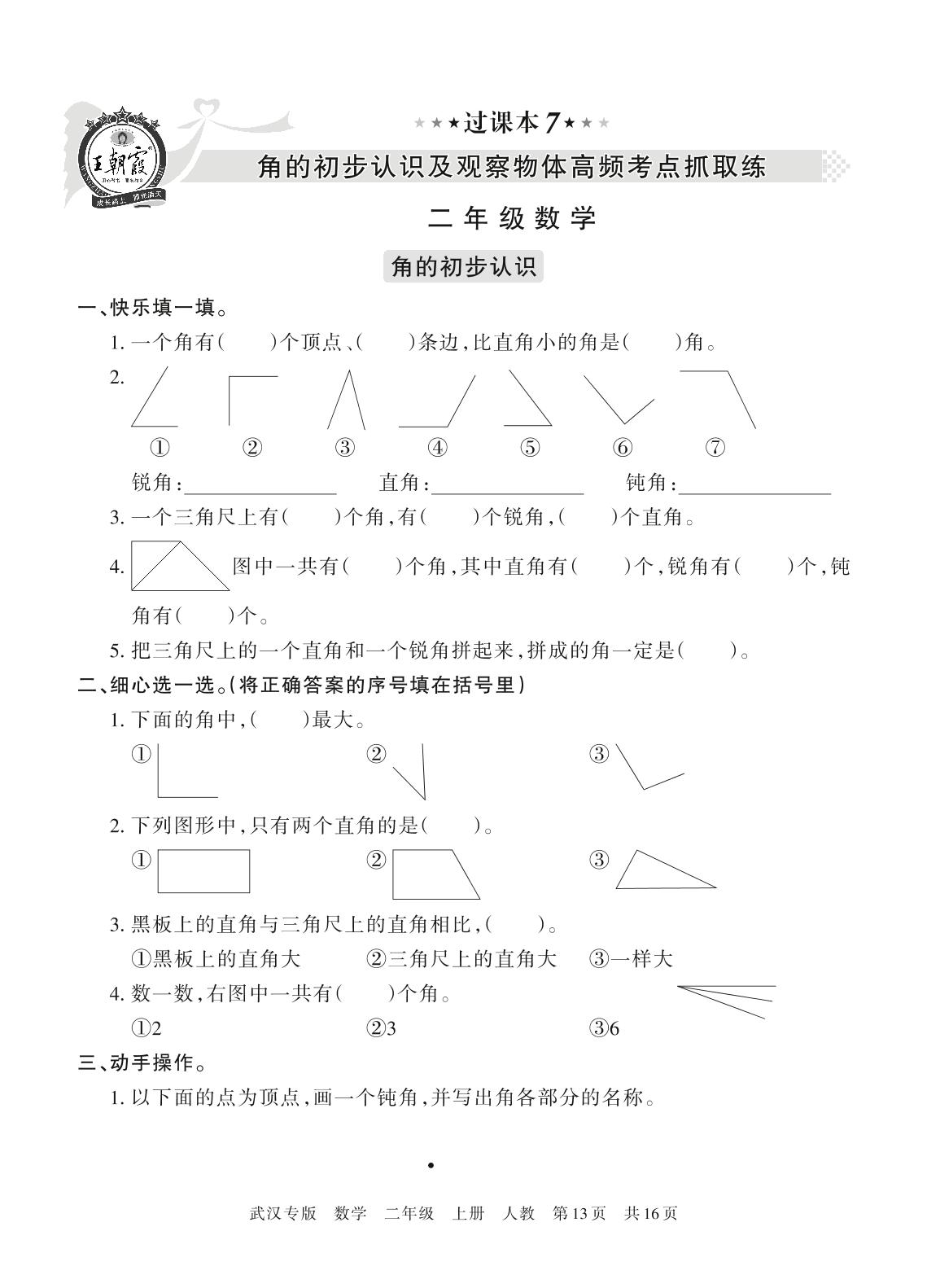 王朝霞期末过课本——角的初步认识及观察物体高频考点抓取练二年级上册数学(人教版)_R211224090233728【7】