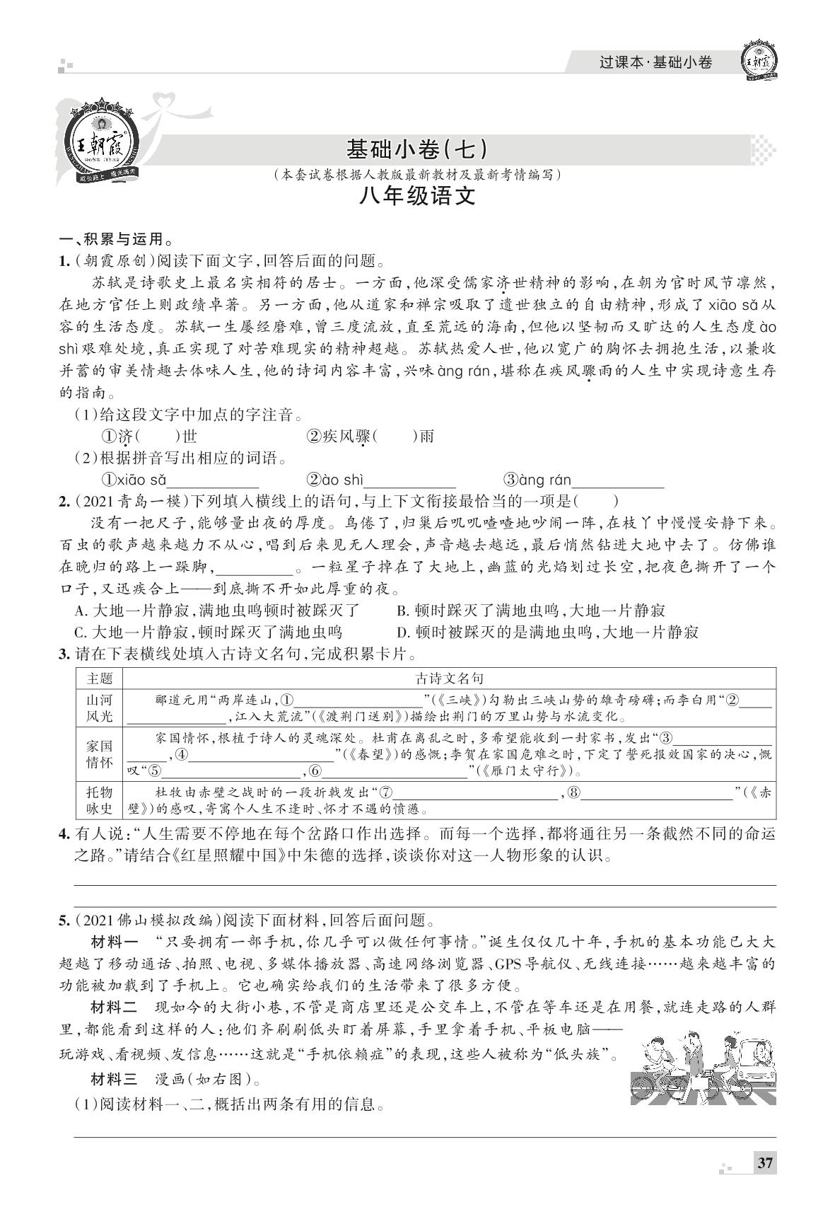 王朝霞期末过课本——基础小卷(七)八年级上册语文(人教版)_R211224090609460【13】