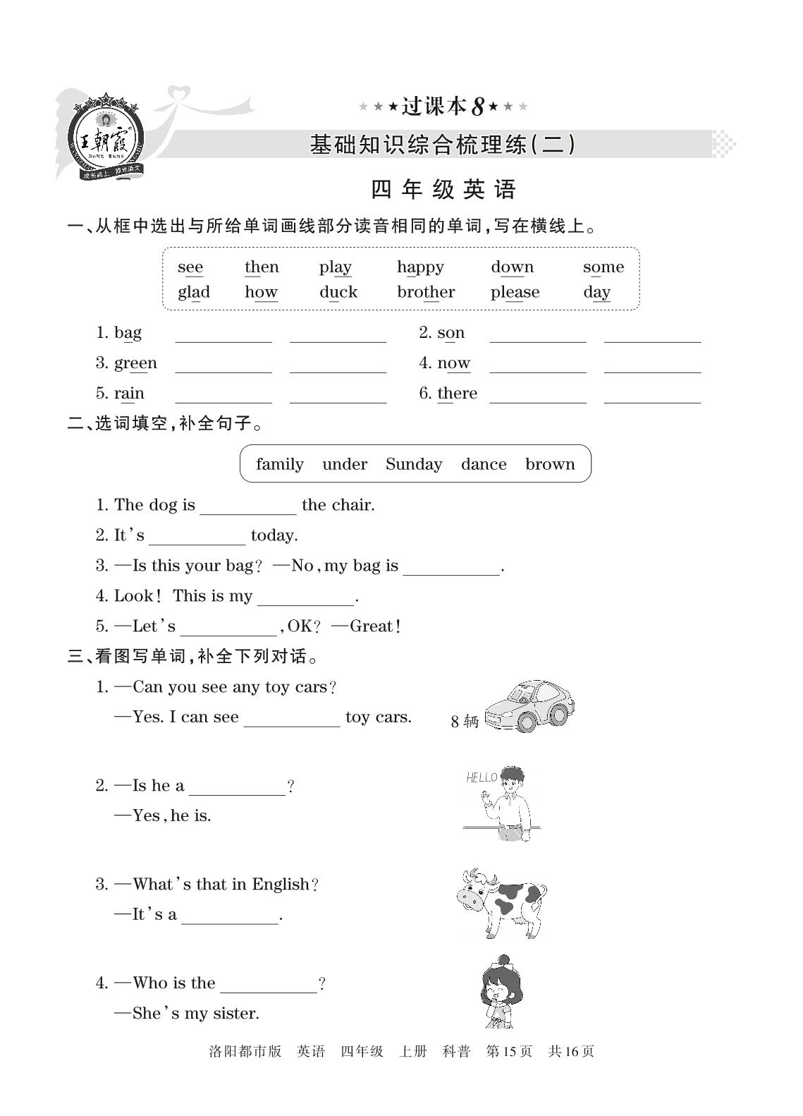 王朝霞期末过课本——基础知识综合梳理练(二)四年级上册英语(科普版)【8】
