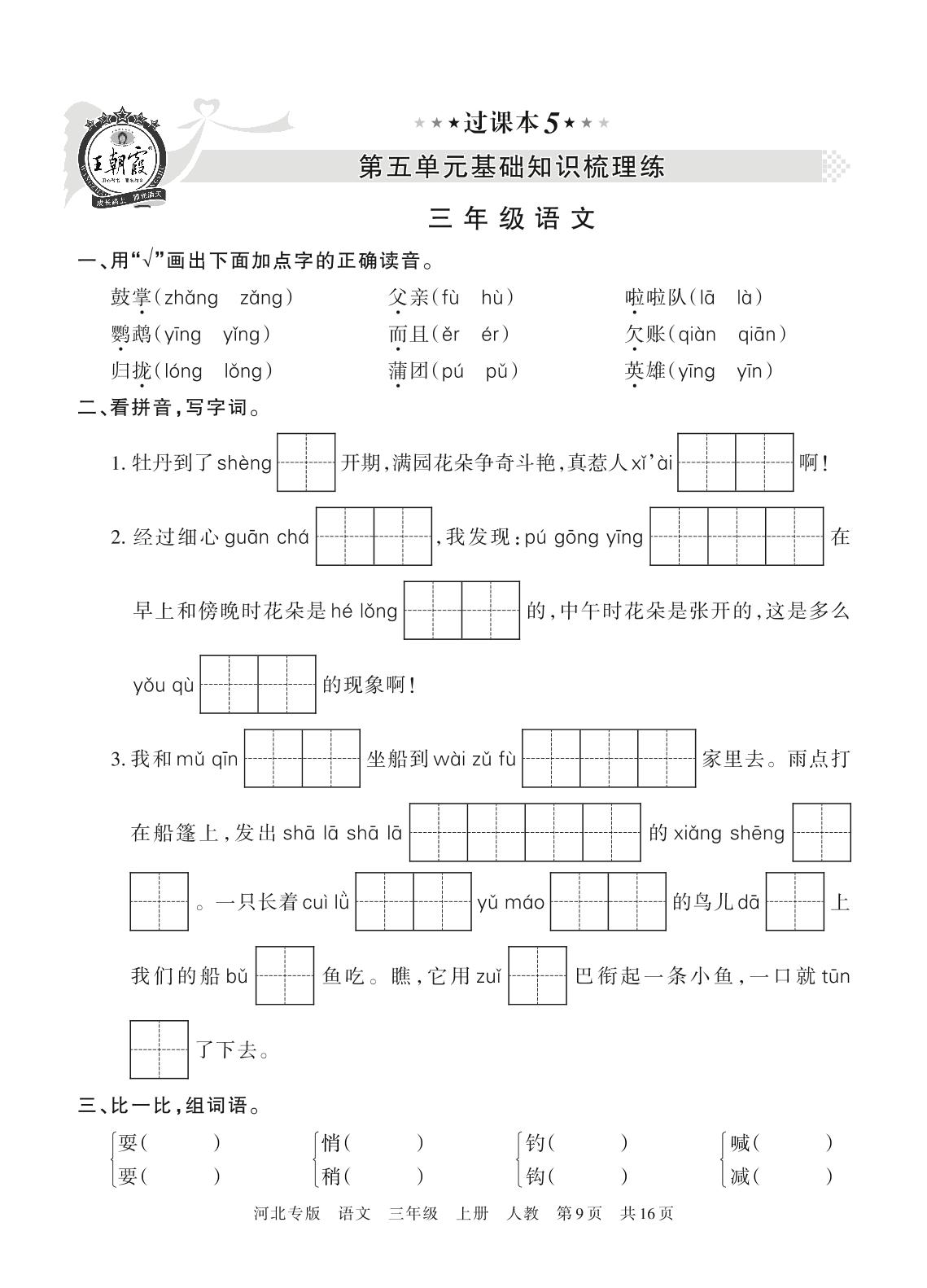 王朝霞期末过课本——第五单元基础知识梳理练三年级上册语文(人教版)_R211224091458229【5】