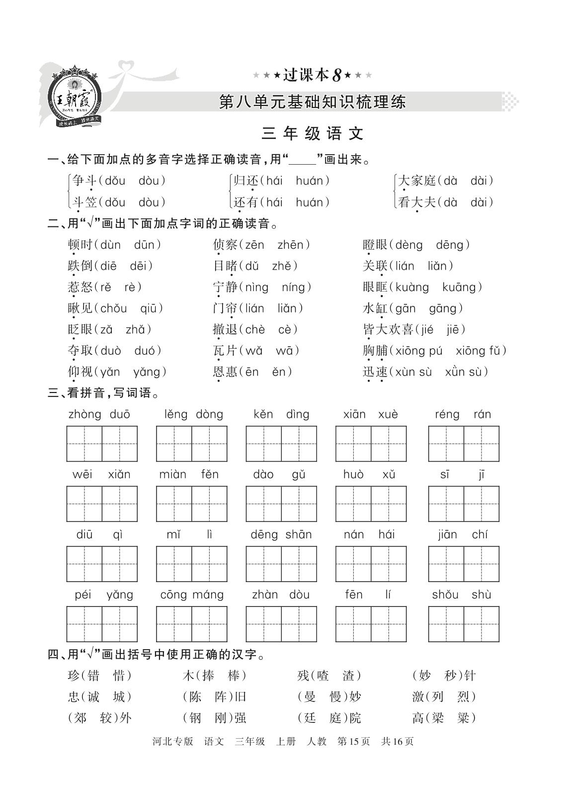 王朝霞期末过课本——第八单元基础知识梳理练三年级上册语文(人教版)_R211224091458548【8】