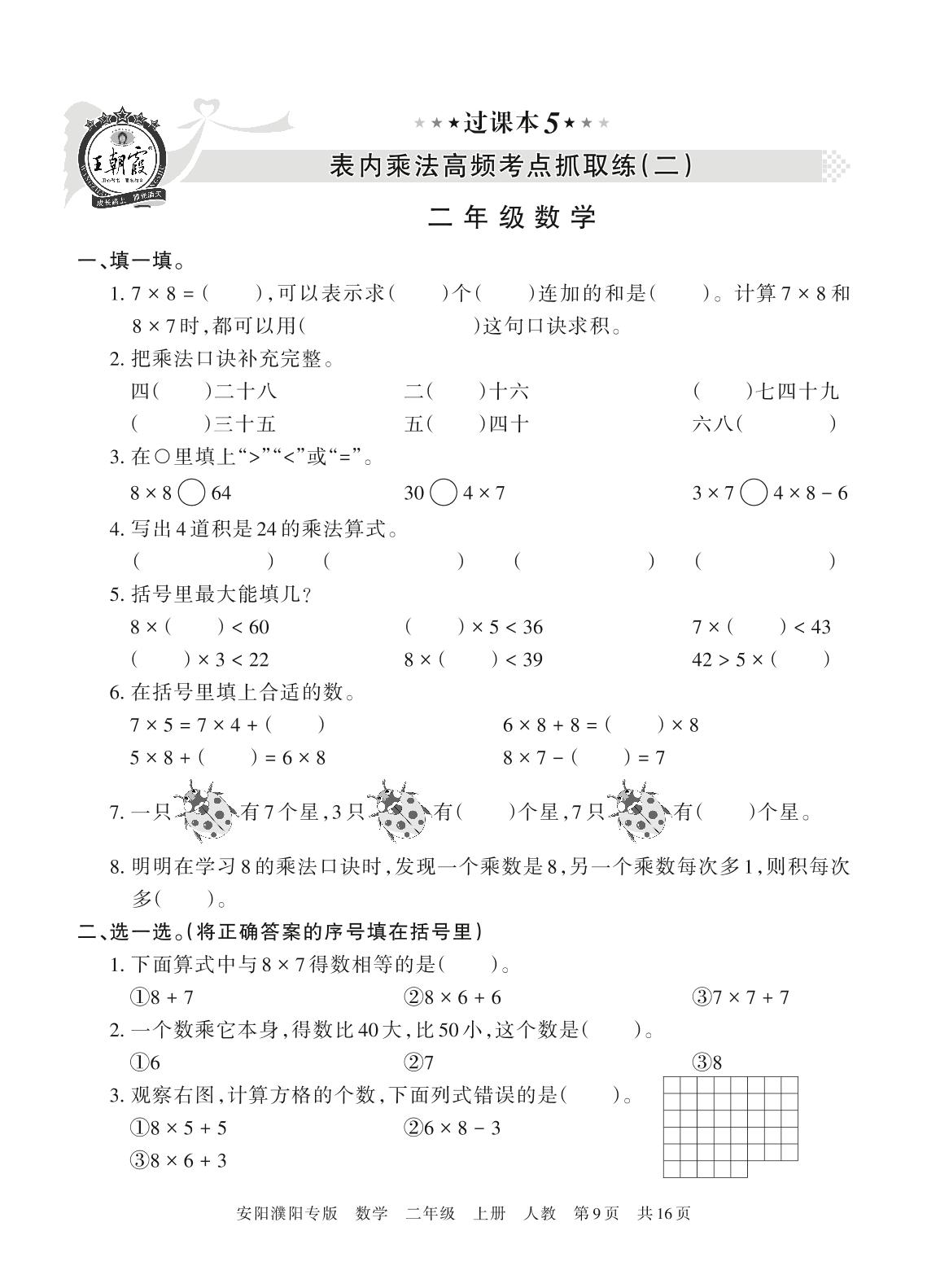 王朝霞期末过课本——表内乘法高频考点抓取练(二)二年级上册数学(人教版)_R211224091503473【5】