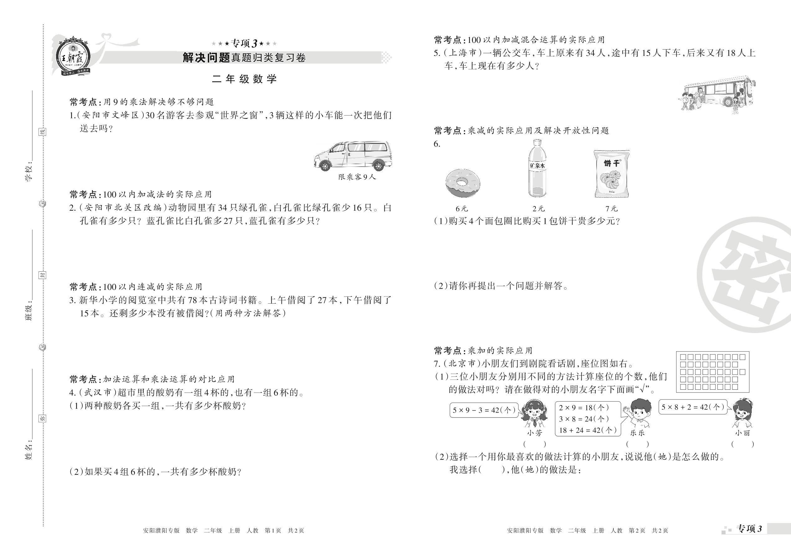 王朝霞期末专项卷——解决问题真题归类复习卷二年级上册数学(人教版)_R211224091503694【3】