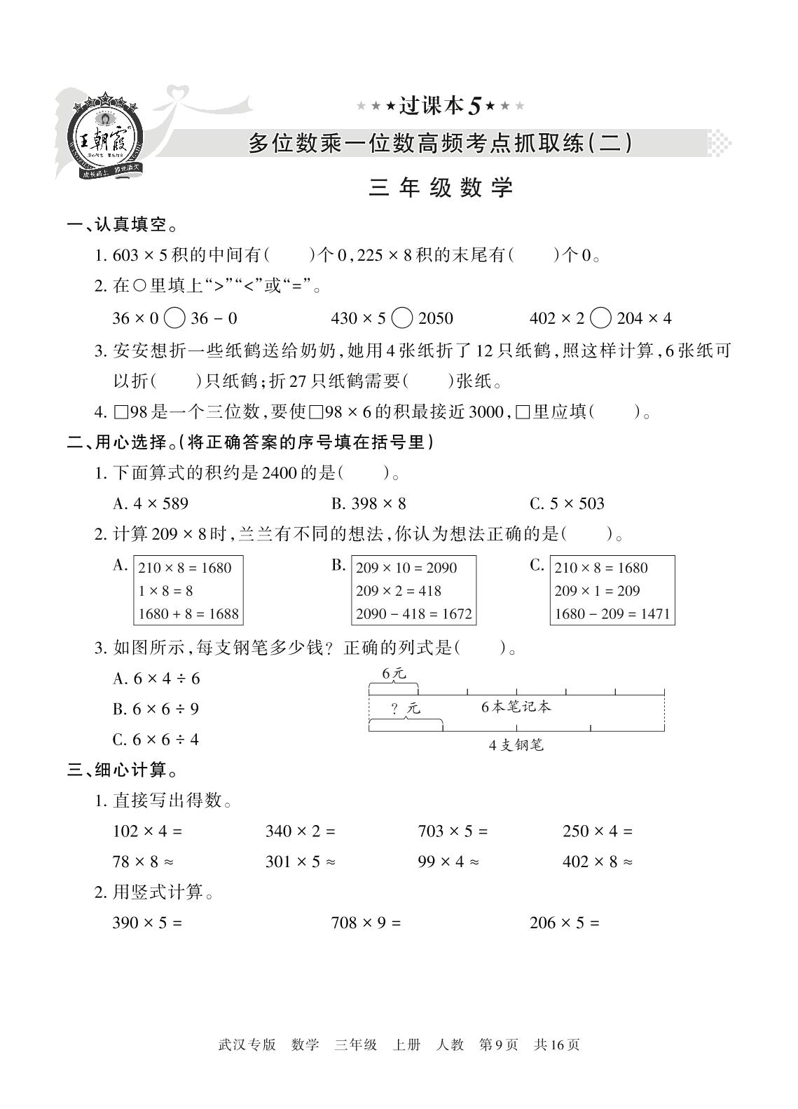 王朝霞期末过课本——多位数乘一位数高频考点抓取练(二)三年级上册数学(人教版)_R211224091549275【5】