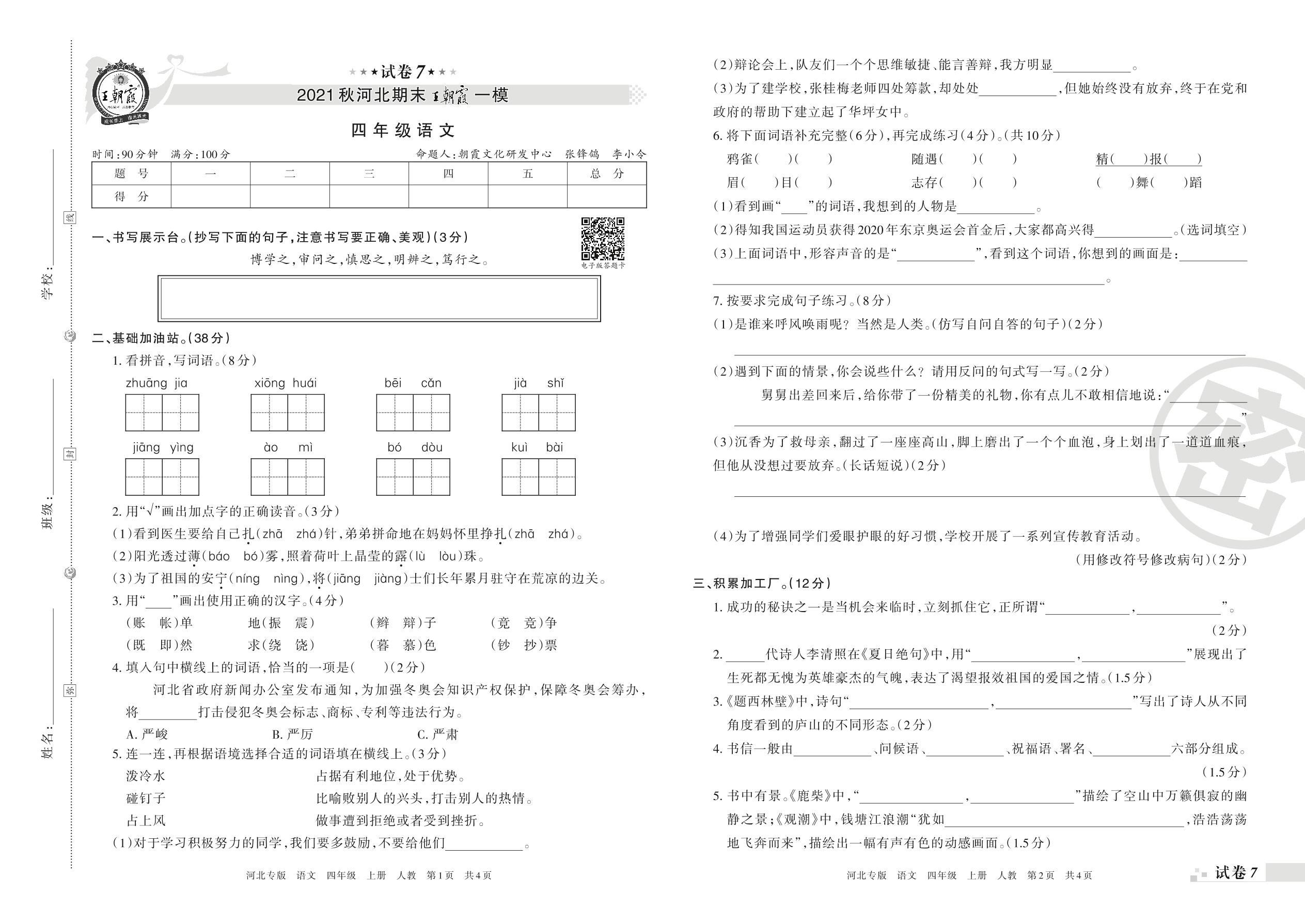 王朝霞期末模拟卷四年级上册语文(人教版)_R211224092046083【7】