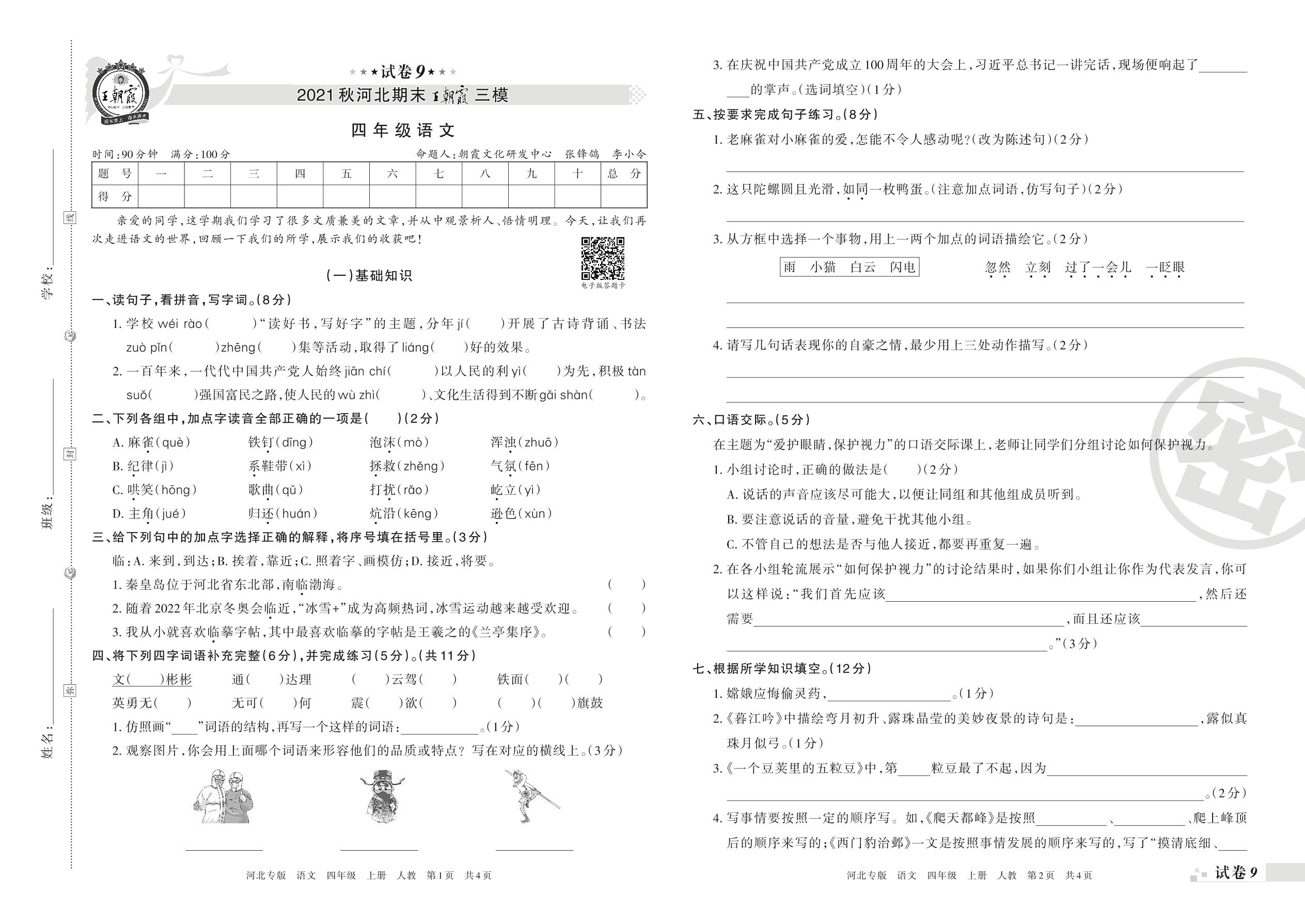 王朝霞期末模拟卷四年级上册语文(人教版)_R211224092046601【9】