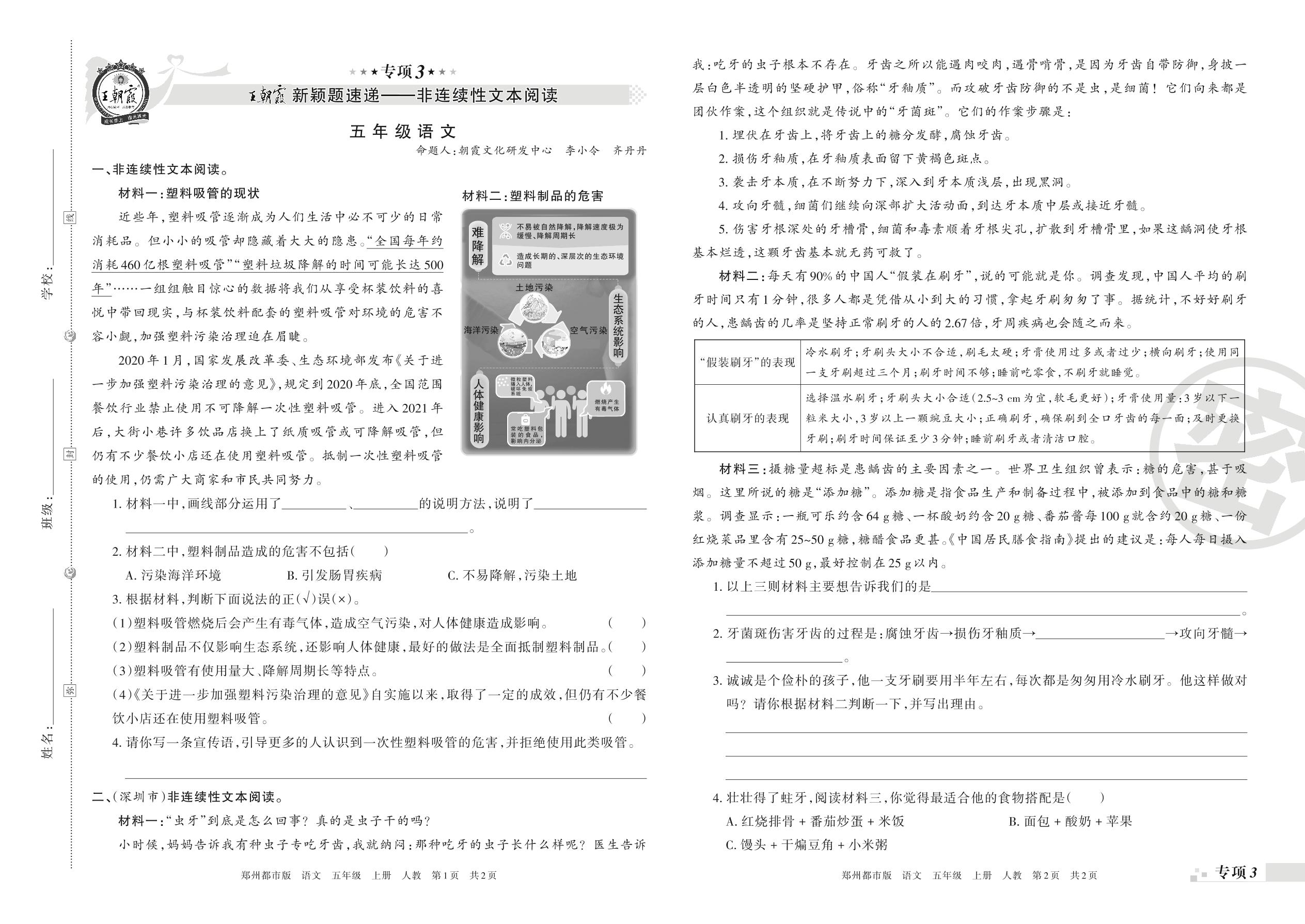 王朝霞期末专项卷——新颖题速递:非连续性文本阅读五年级上册语文(人教版)_R211224092754329【3】