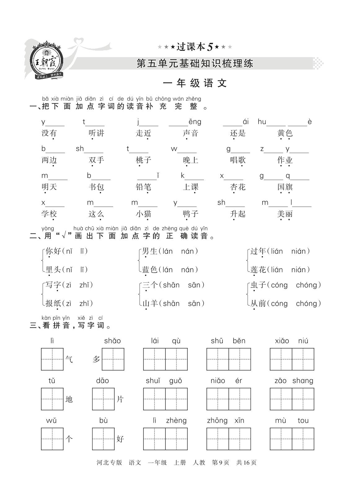 王朝霞期末过课本——第五单元基础知识梳理练一年级上册语文(人教版)_R211224092943775【5】