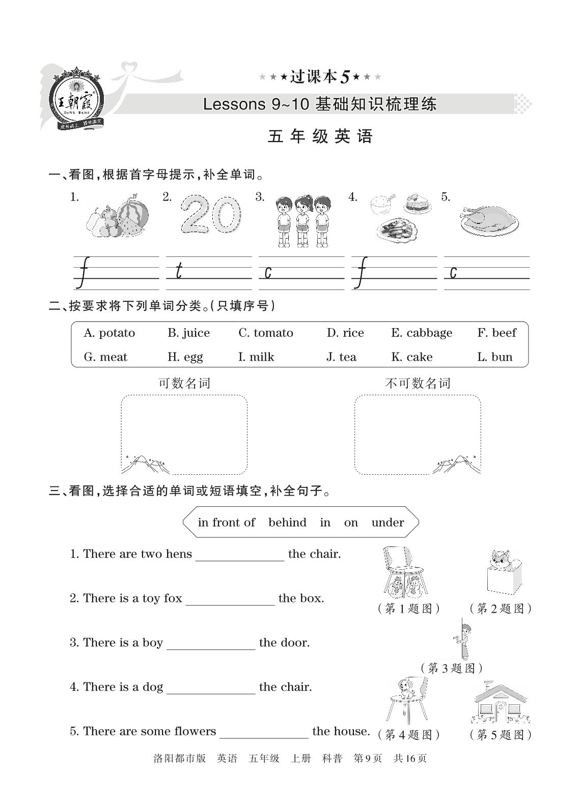 王朝霞期末过课本——Lessons 9~10基础知识梳理练五年级上册英语(科普版)【5】