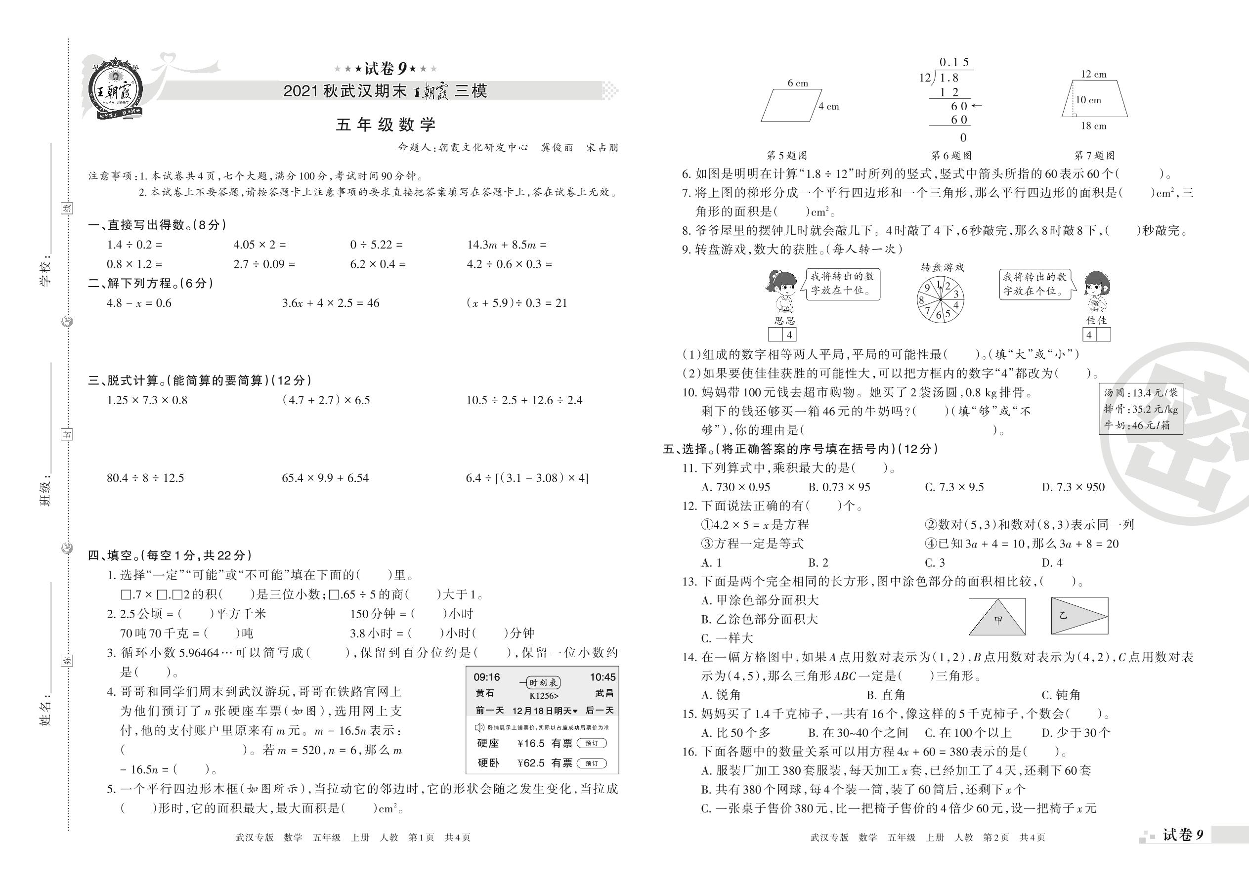 王朝霞期末模拟卷五年级上册数学(人教版)_R211224093301392【9】
