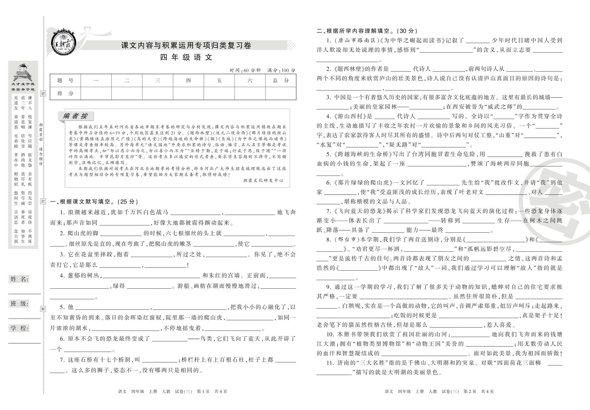 王朝霞期末专项卷四年级上册语文(人教版)_R210801214503【3】