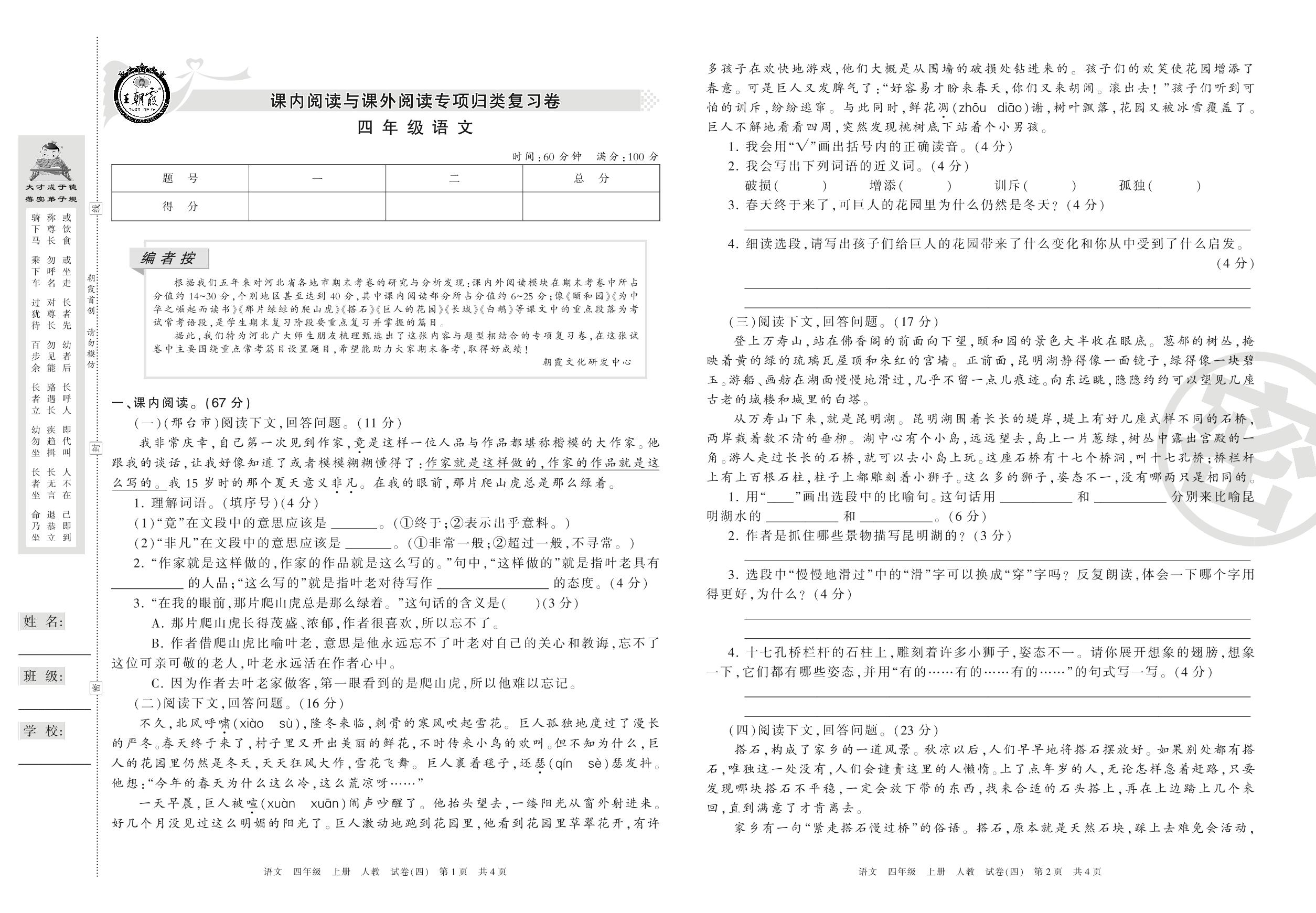 王朝霞期末专项卷四年级上册语文(人教版)_R210801214510【4】