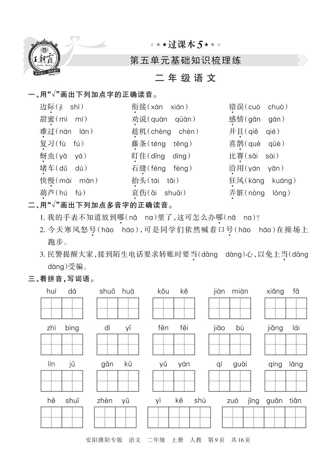 王朝霞期末过课本——第五单元基础知识梳理练二年级上册语文(人教版)_R211224093607624【5】