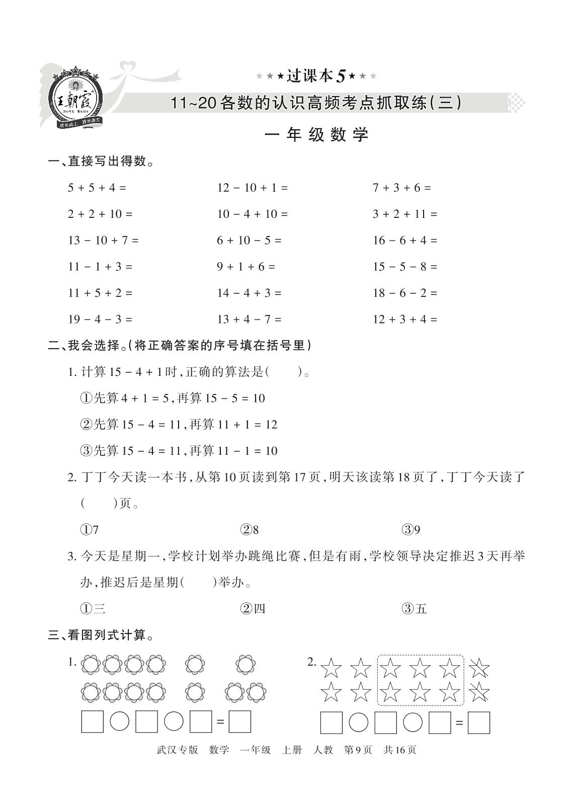 王朝霞期末过课本——11~20各数的认识高频考点抓取练(三)一年级上册数学(人教版)_R211224093748654【5】