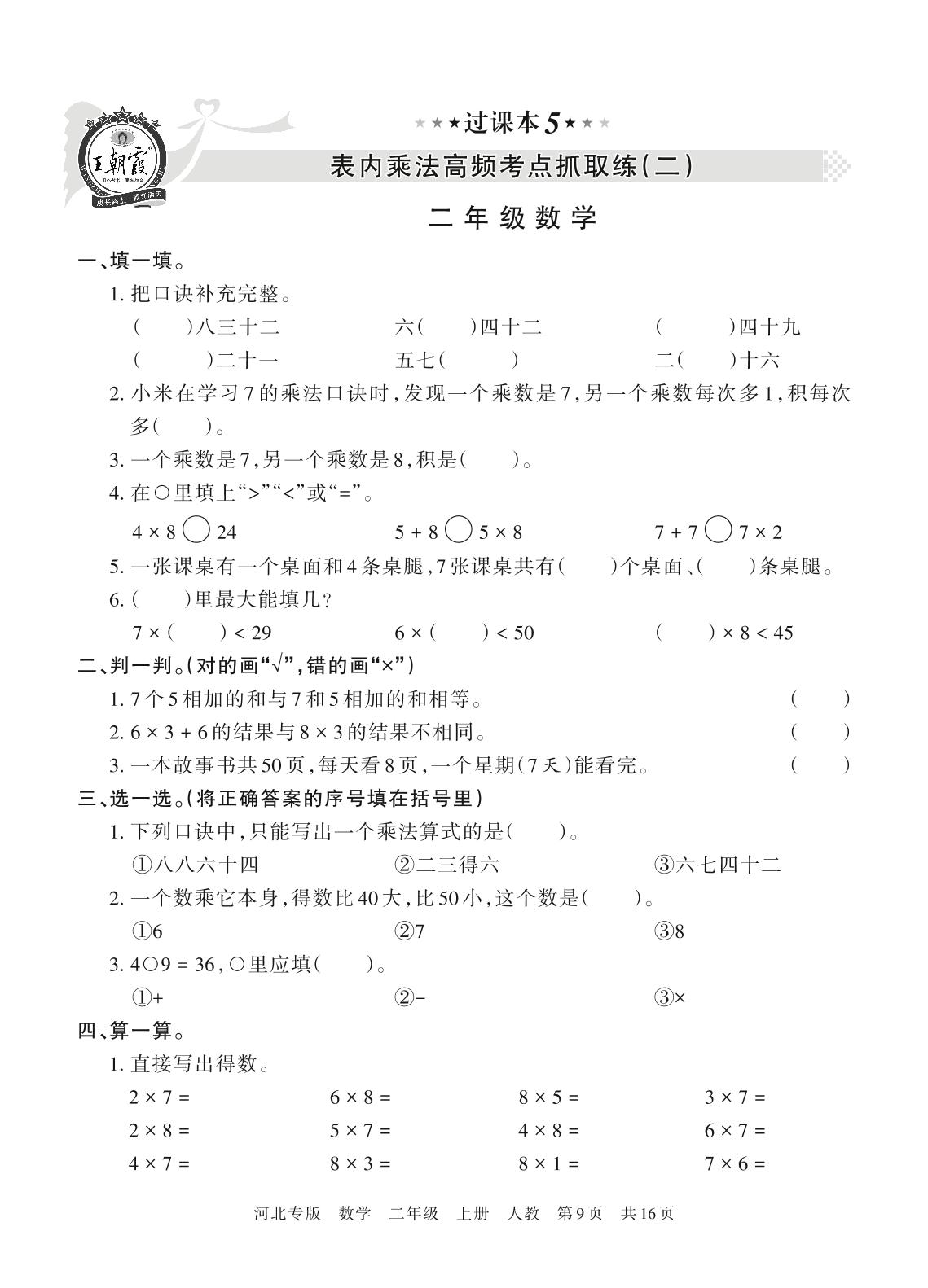 王朝霞期末过课本——表内乘法高频考点抓取练(二)二年级上册数学(人教版)_R211224094046158【5】