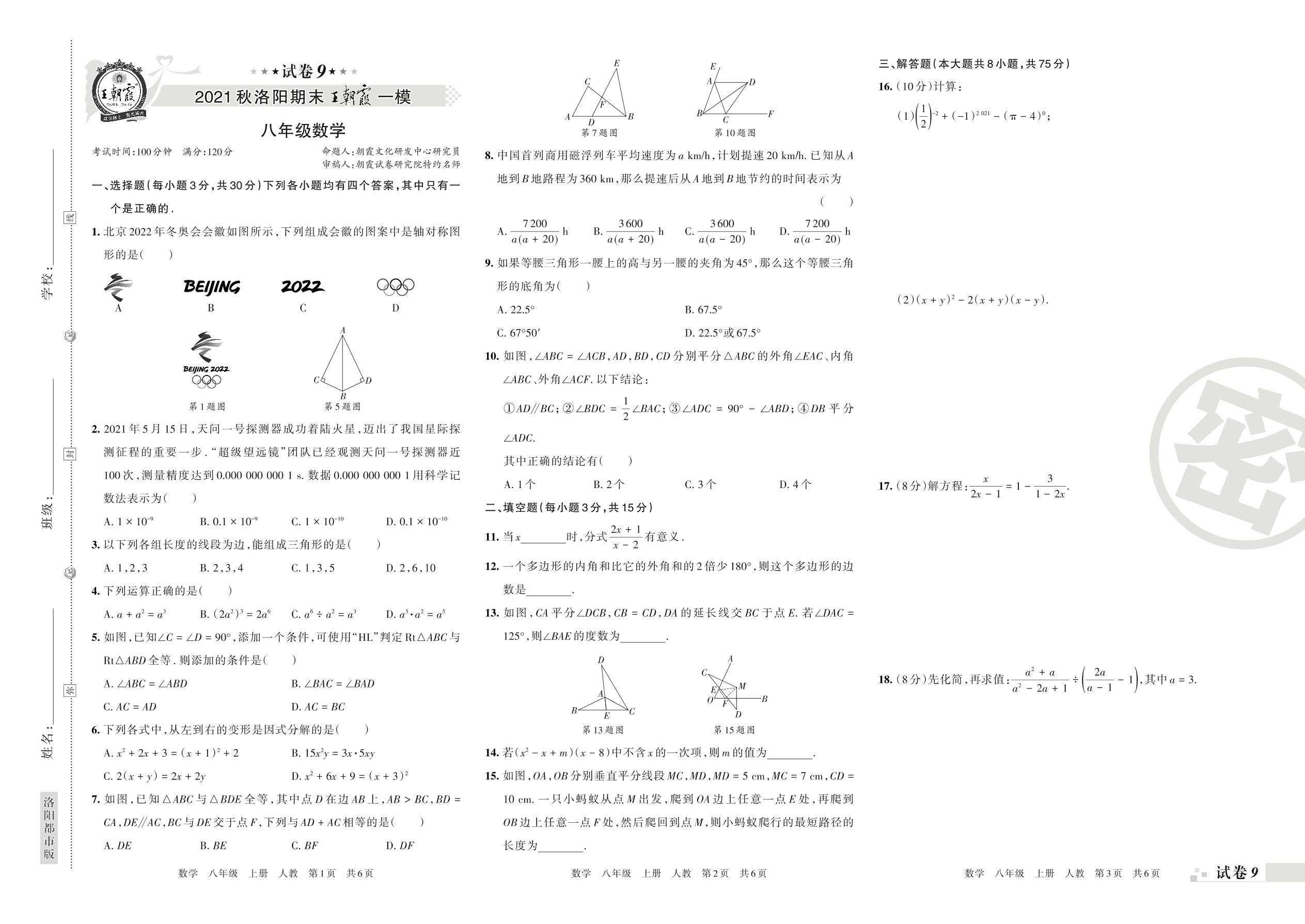 王朝霞期末模拟卷八年级上册数学(人教版)_R211224094122477【9】