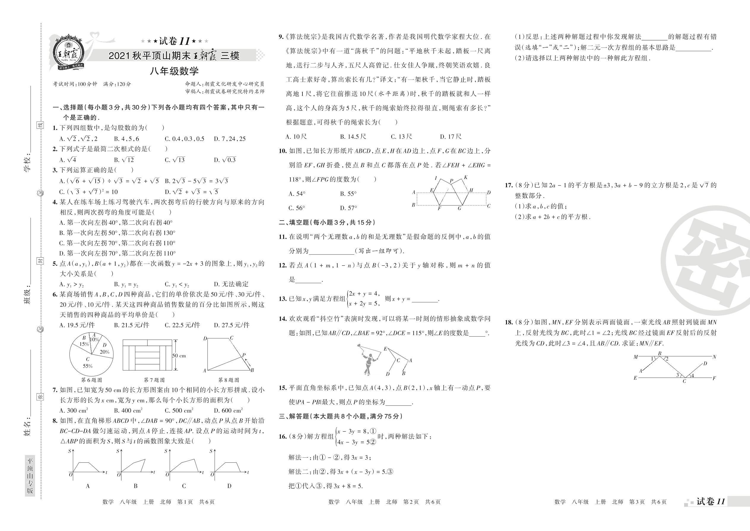 王朝霞期末模拟卷八年级上册数学(北师版)_R211224094834209【11】