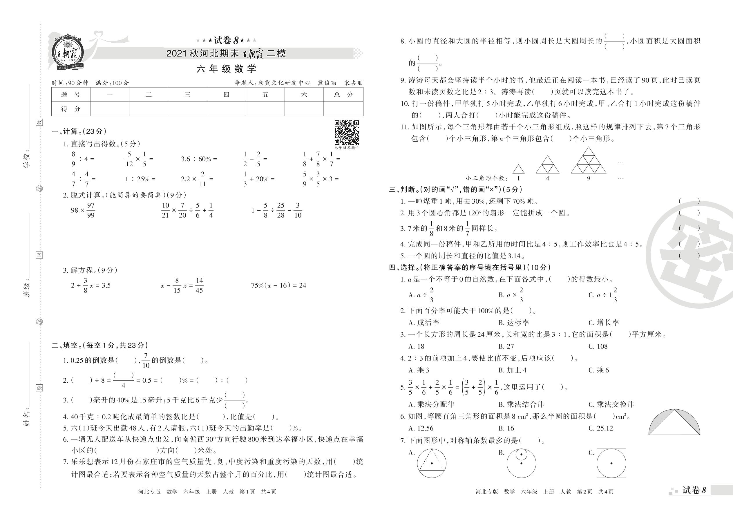 王朝霞期末模拟卷六年级上册数学(人教版)_R211224094904320【8】