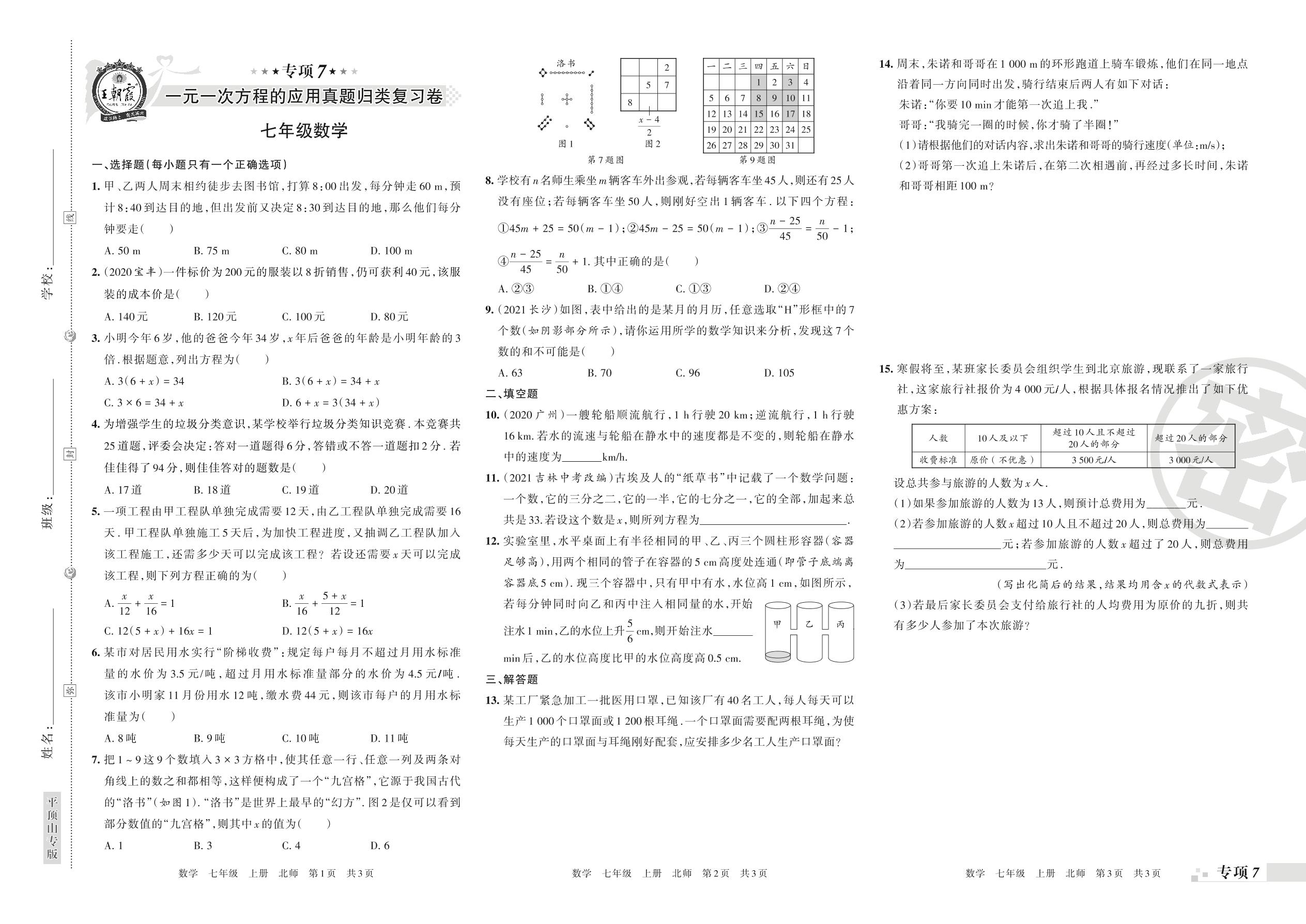王朝霞期末专项卷——一元一次方程的应用真题归类复习卷七年级上册数学(北师版)_R211224095148643【7】