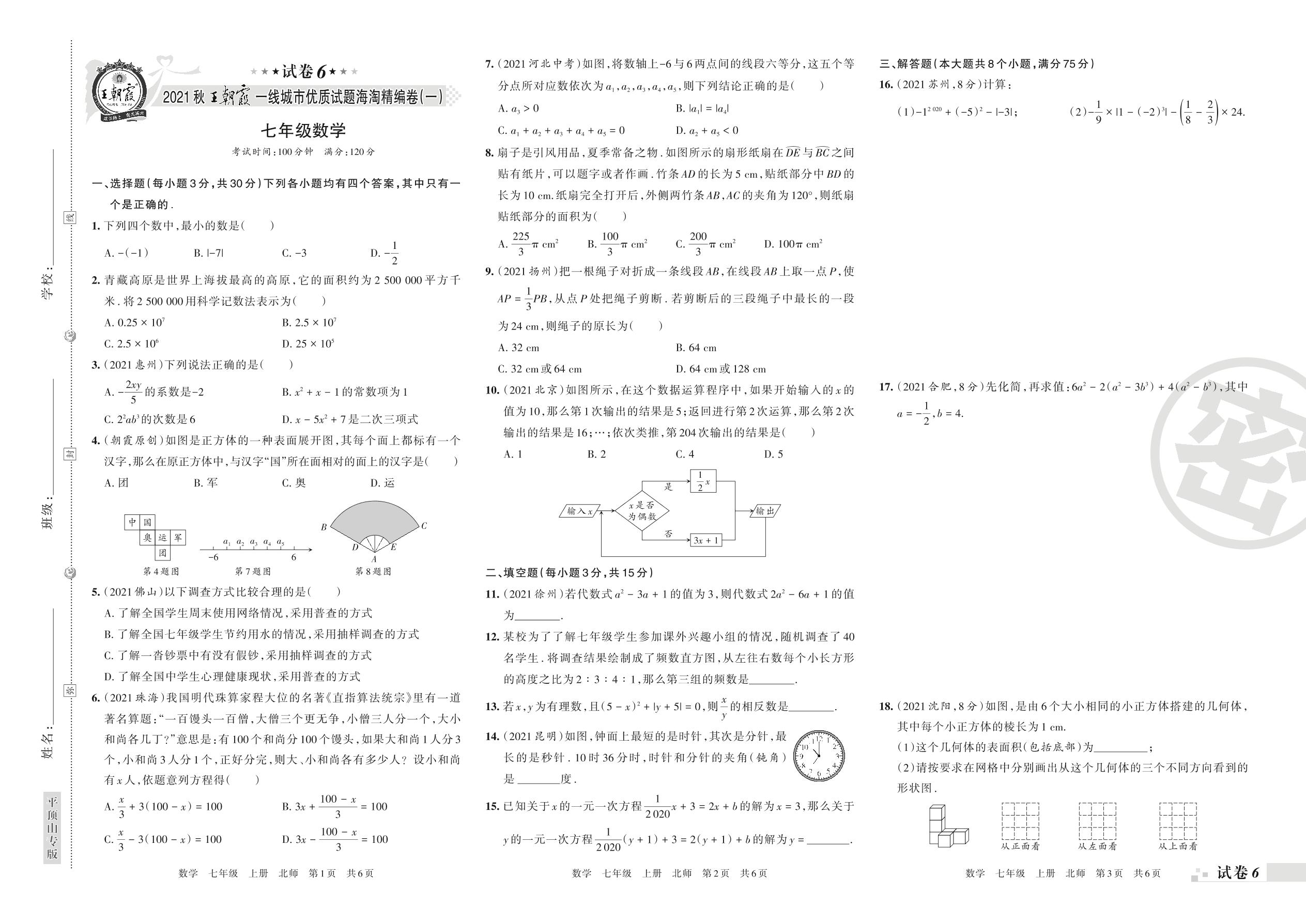 2021秋王朝霞一线城市优质试题海淘精编卷(一)七年级数学(北师版)【6】