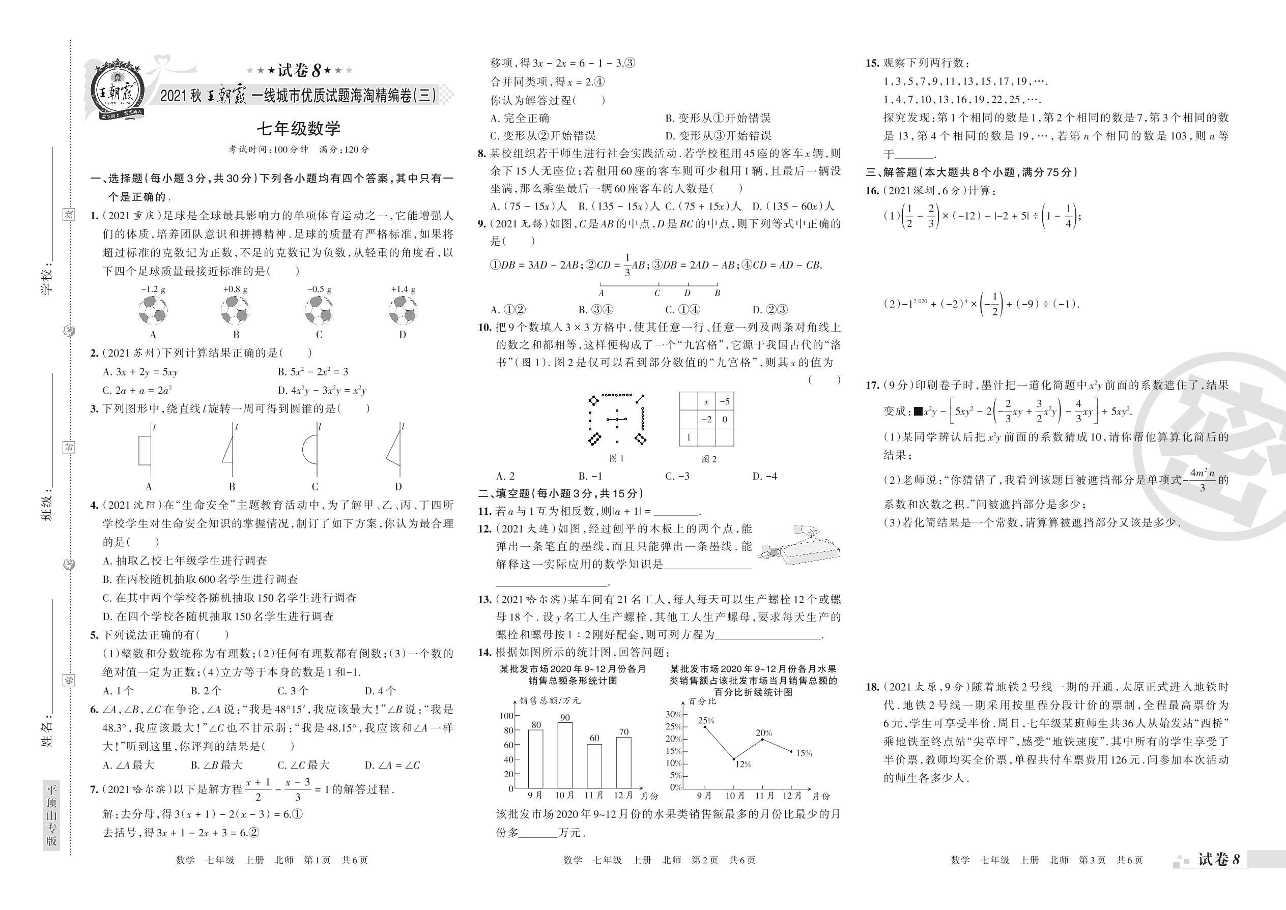 2021秋王朝霞一线城市优质试题海淘精编卷(三)七年级数学(北师版)【8】