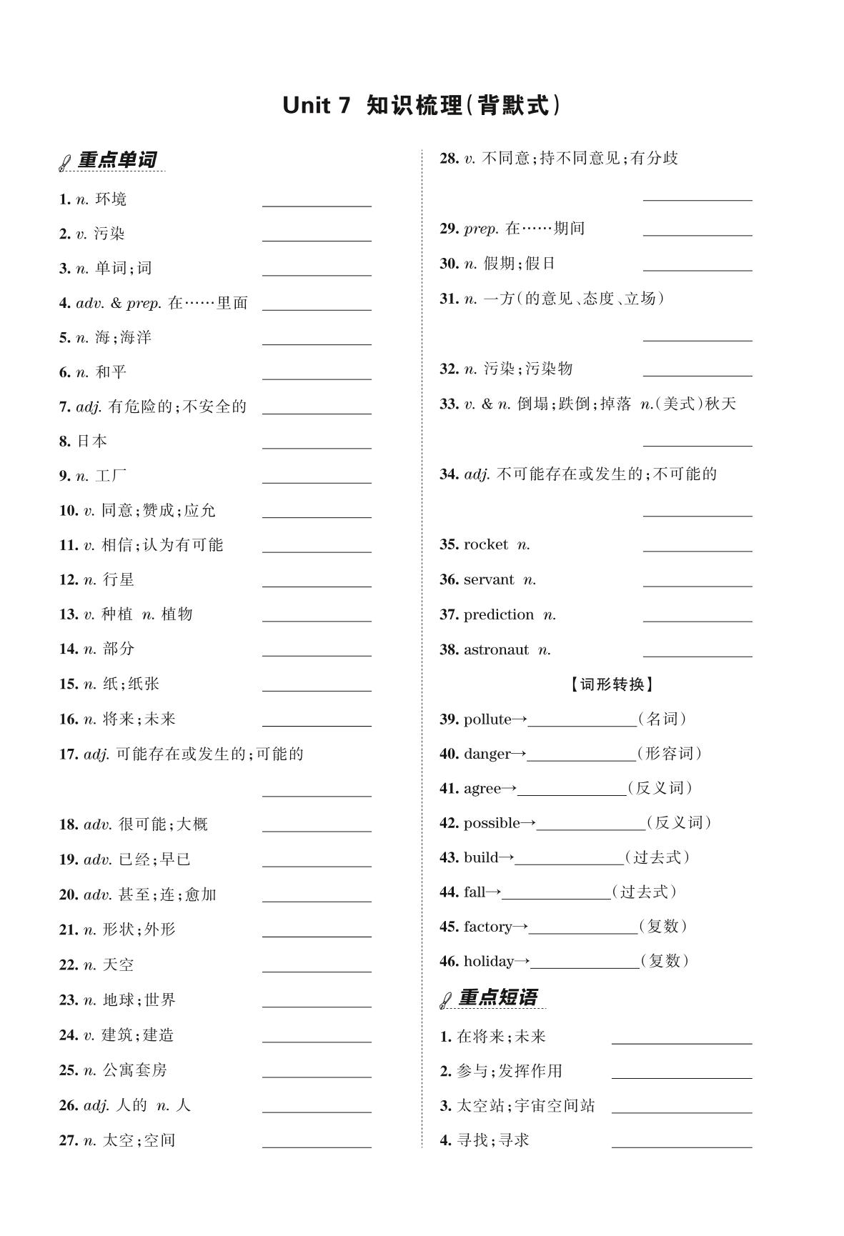 王朝霞期末过课本——Unit 7 知识梳理(背默式)八年级上册英语(人教版)_R211224095559408【7】