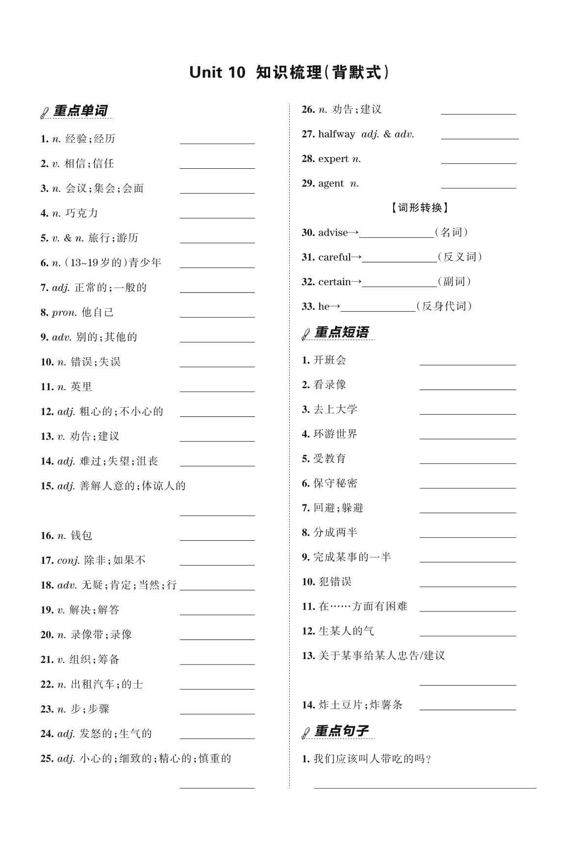 王朝霞期末过课本——Unit 10 知识梳理(背默式)八年级上册英语(人教版)_R211224095559705【10】