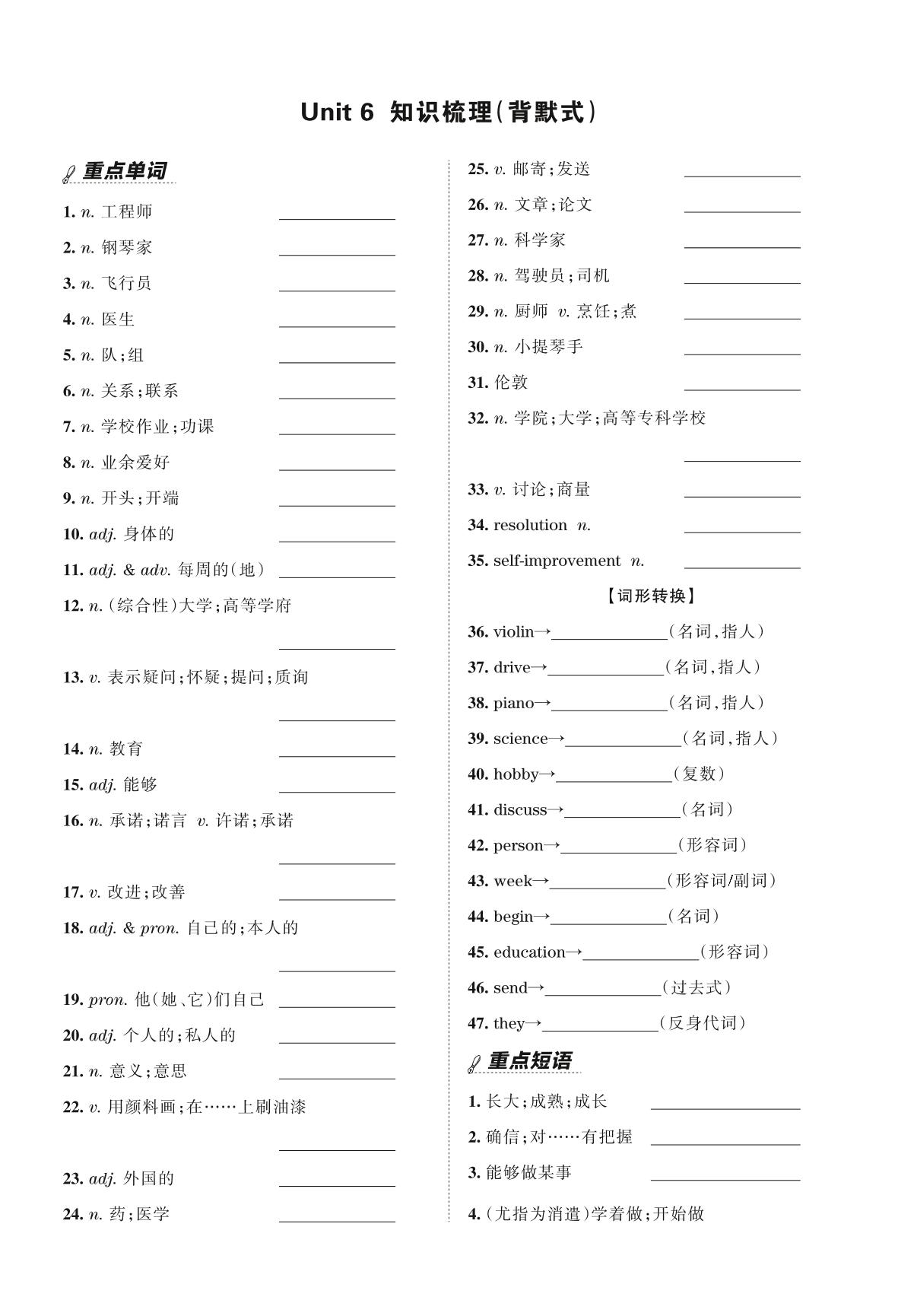 王朝霞期末过课本——Unit 6 知识梳理(背默式)八年级上册英语(人教版)_R211224095559239【6】