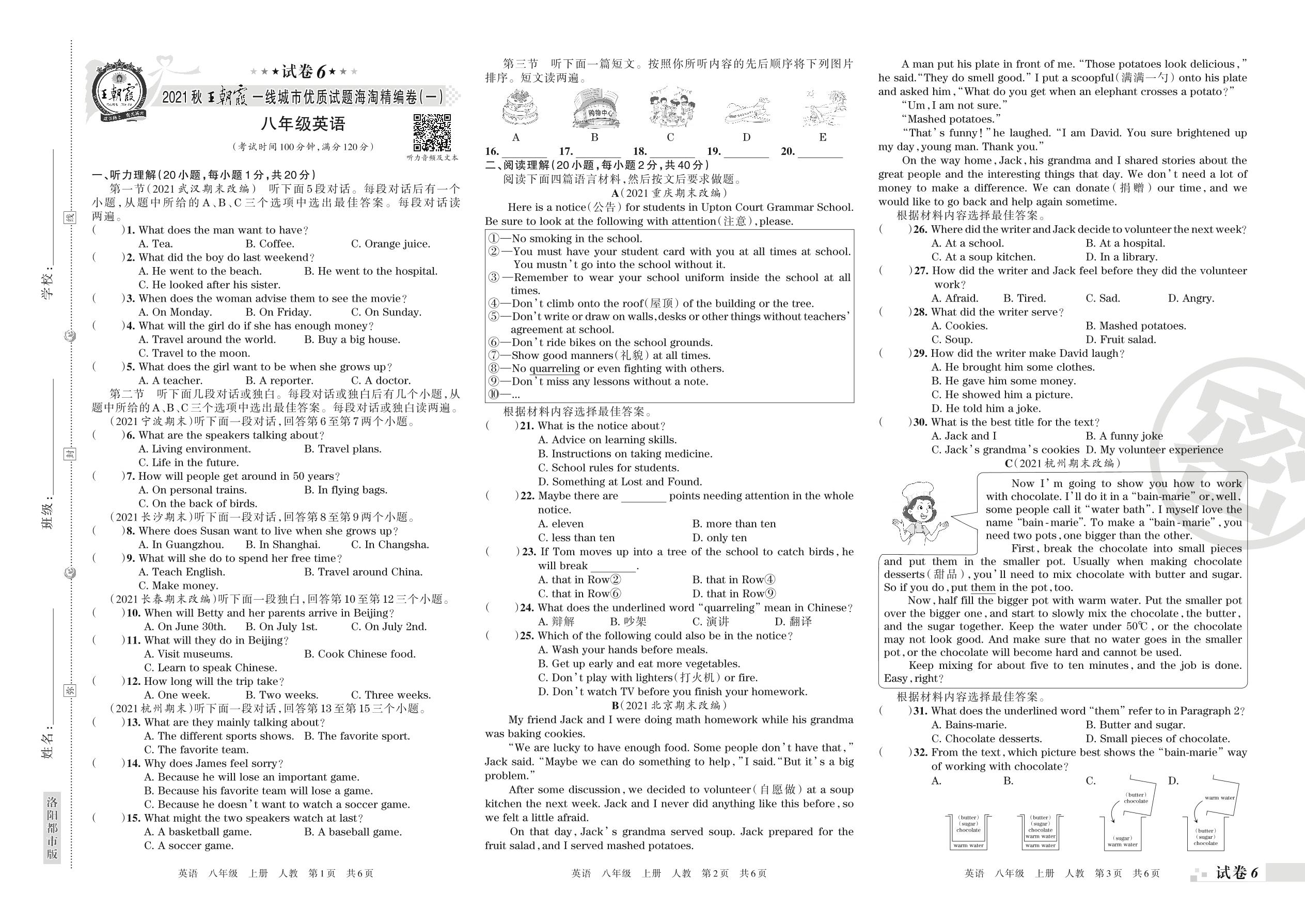 2021秋王朝霞一线城市优质试题海淘精编卷(一)八年级英语(人教版)【6】