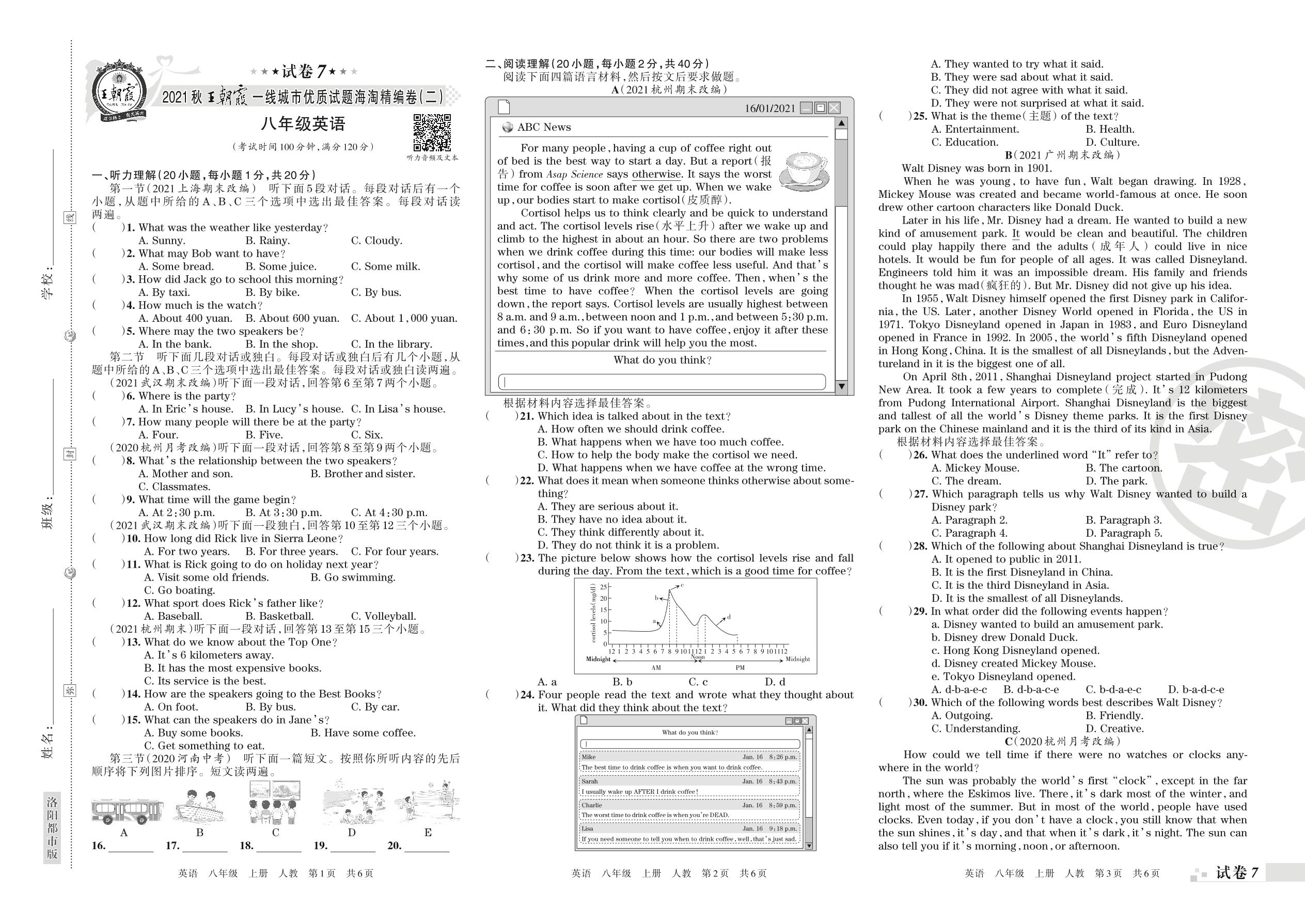 2021秋王朝霞一线城市优质试题海淘精编卷(二)八年级英语(人教版)【7】