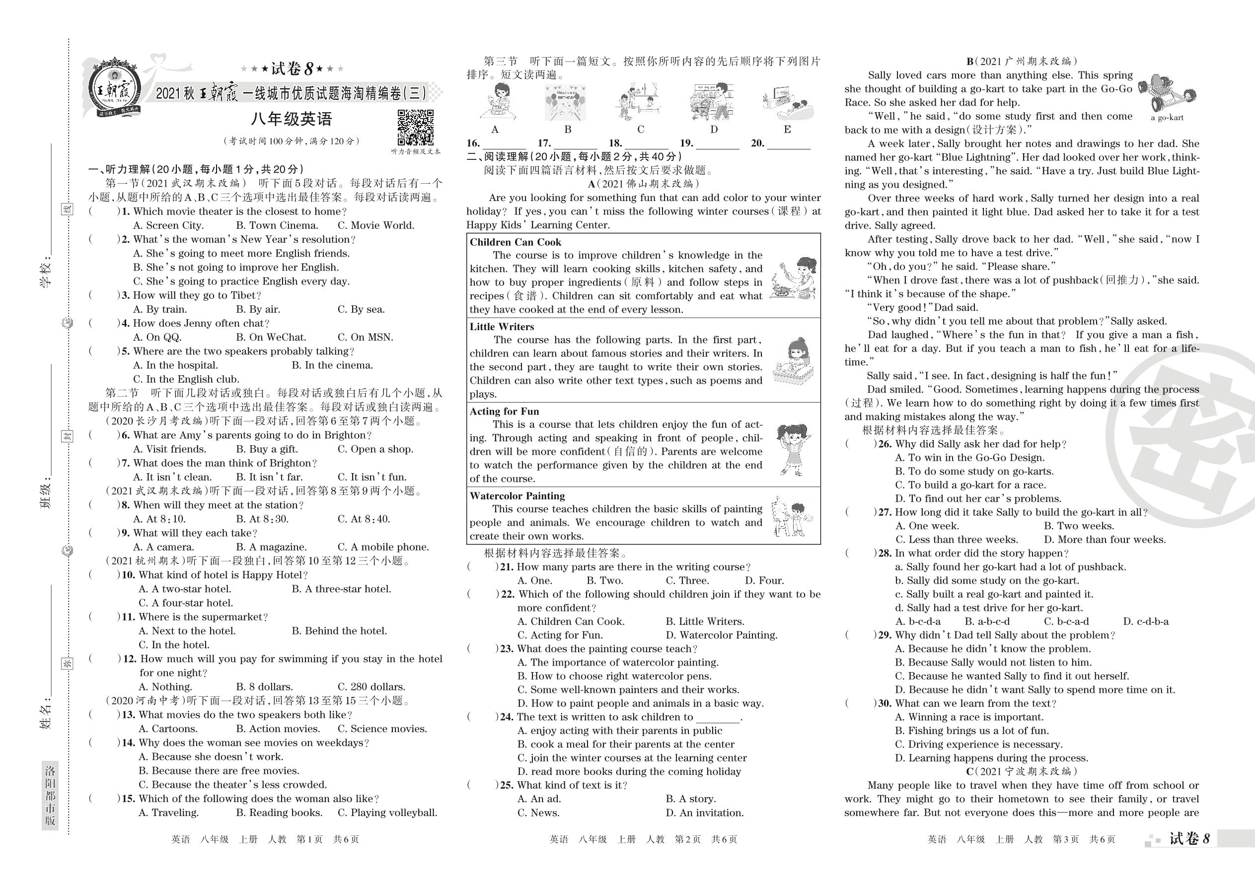 2021秋王朝霞一线城市优质试题海淘精编卷(三)八年级英语(人教版)【8】