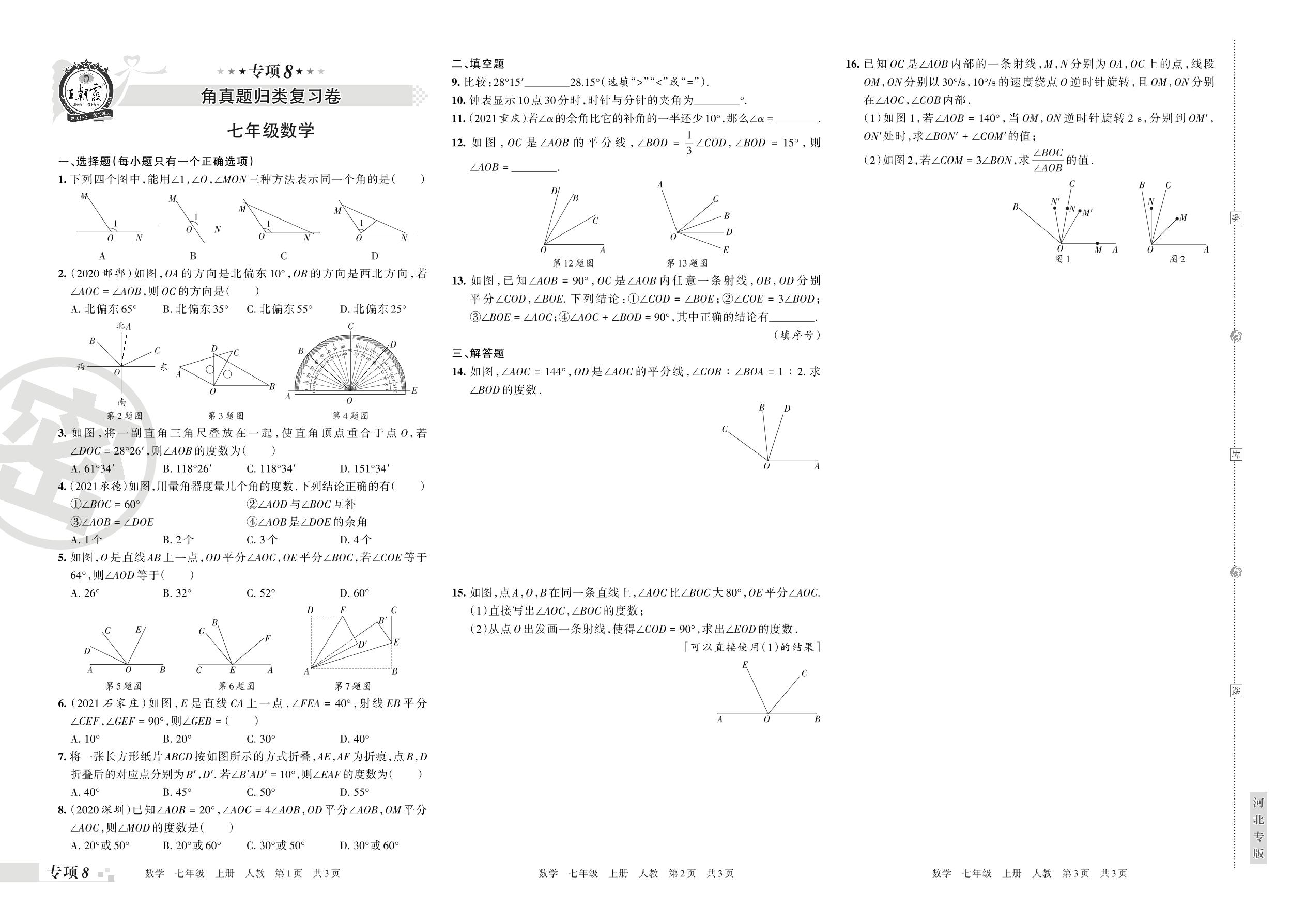 王朝霞期末专项卷——角真题归类复习卷七年级上册数学(人教版)【8】