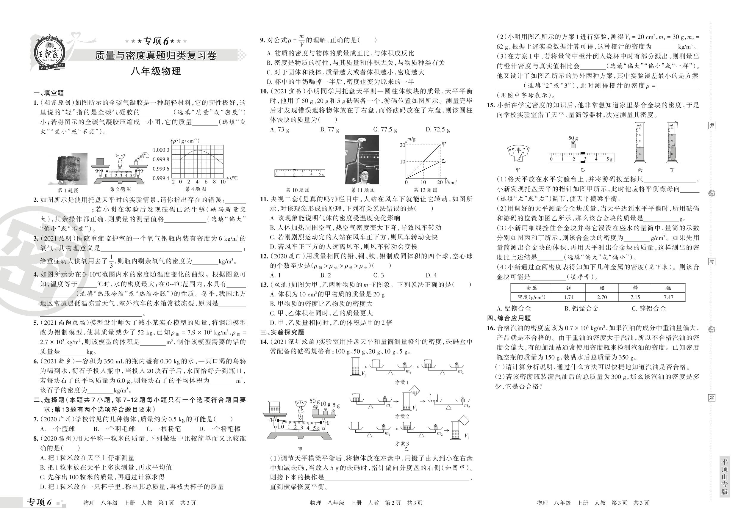 王朝霞期末专项卷——质量与密度真题归类复习卷八年级上册物理(人教版)_R211224095642556【6】
