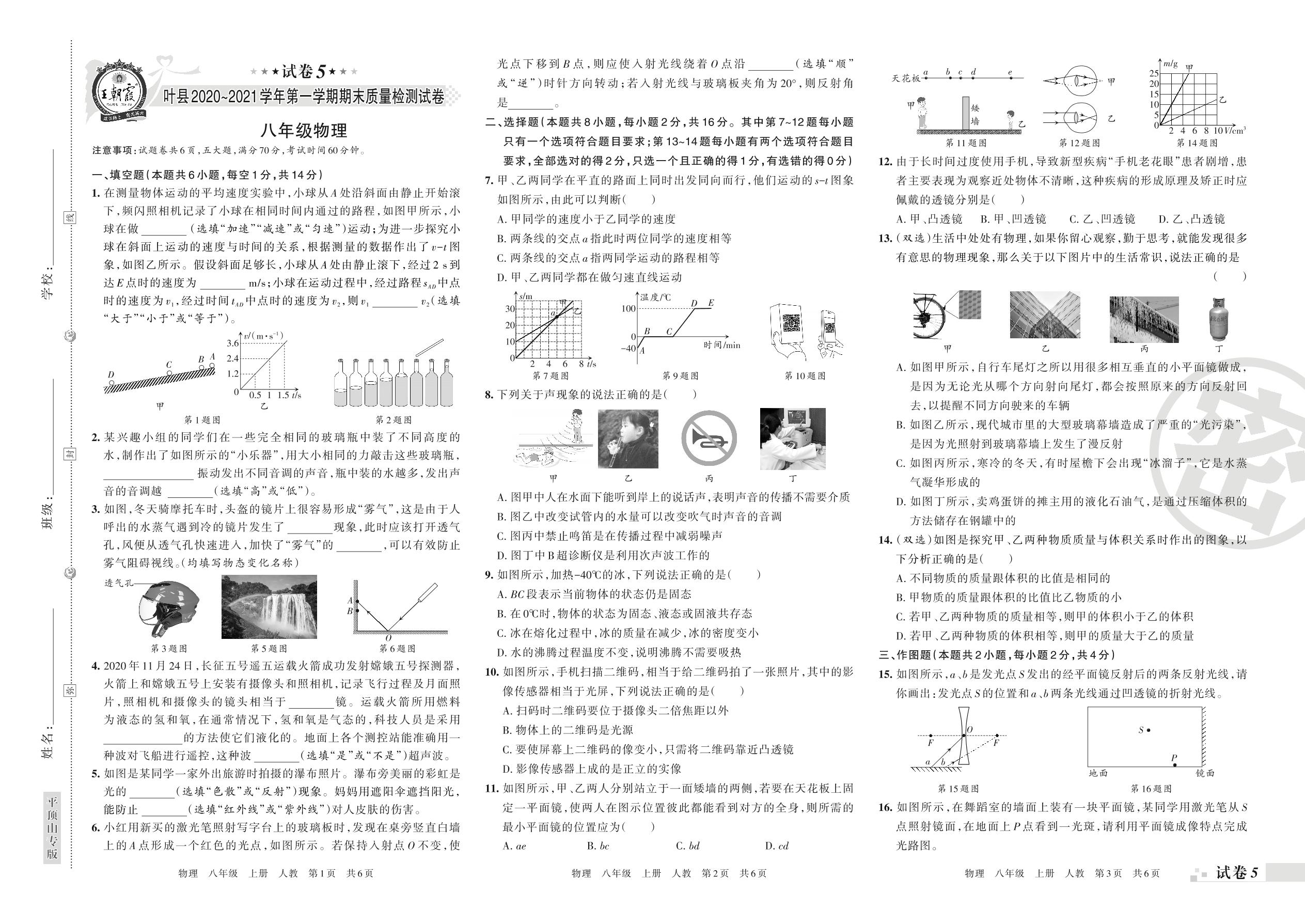 叶县2020~2021学年第一学期期末质量检测试卷八年级物理(人教版)【5】