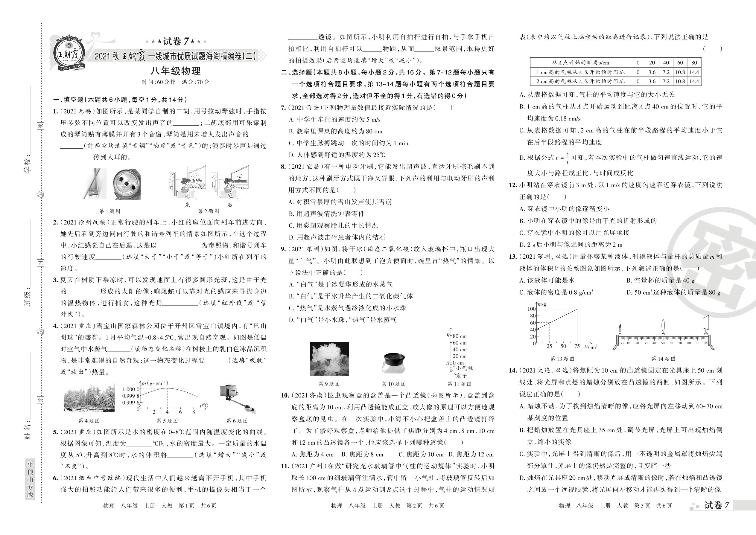 2021秋王朝霞一线城市优质试题海淘精编卷(二)八年级物理(人教版)【7】