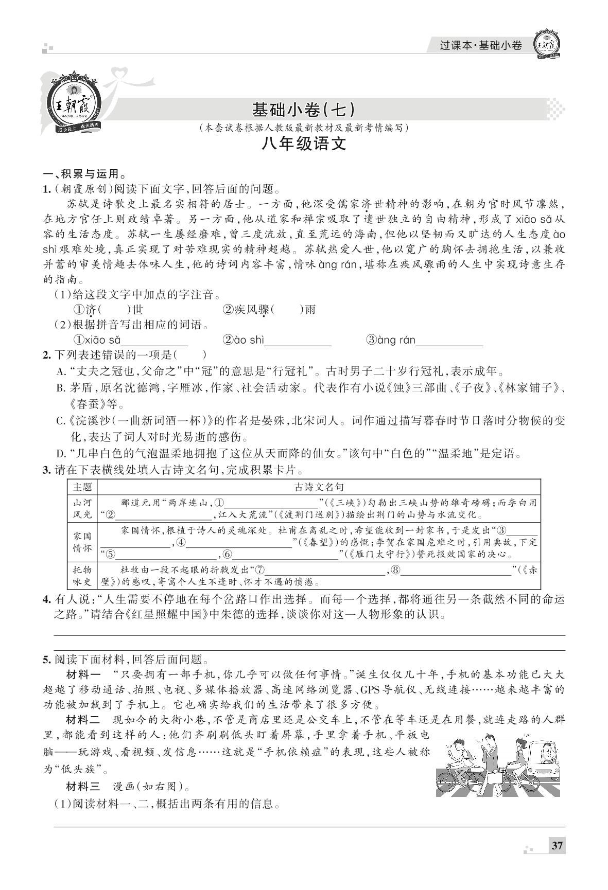 王朝霞期末过课本——基础小卷(七)八年级上册语文(人教版)_R211224100244424【13】
