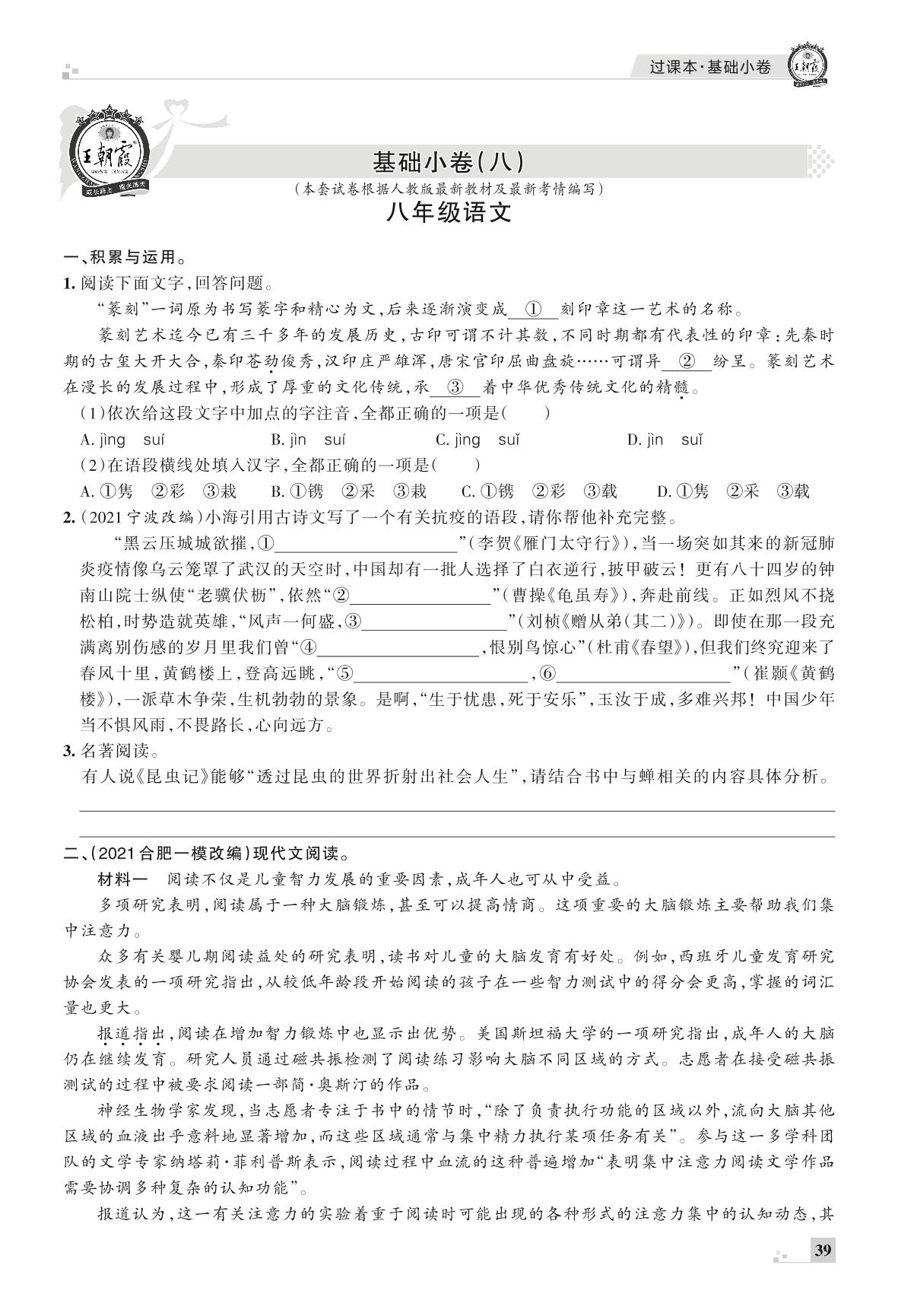 王朝霞期末过课本——基础小卷(八)八年级上册语文(人教版)_R211224100244426【14】