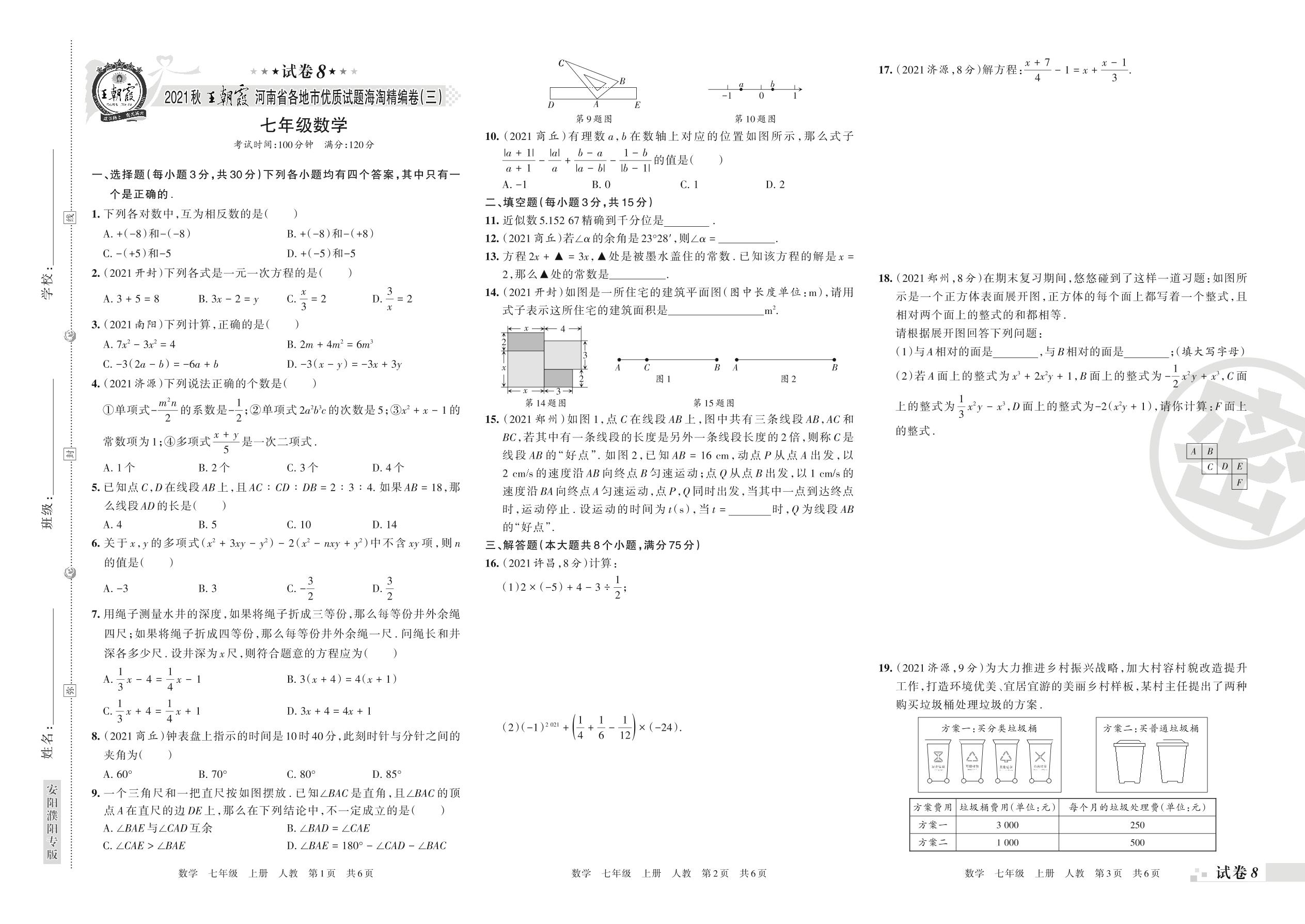 河南省各地市优质试题海淘精编卷(三)七年级上册数学(人教版)【8】