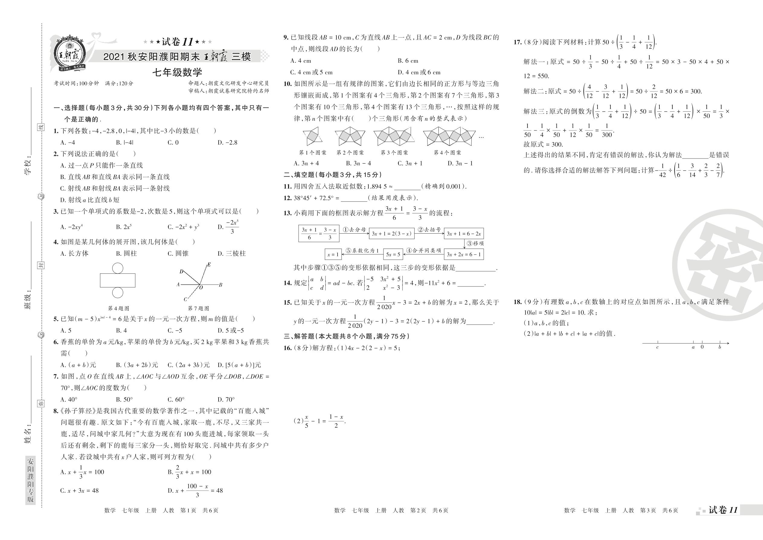 王朝霞期末模拟卷七年级上册数学(人教版)_R211224100401409【11】